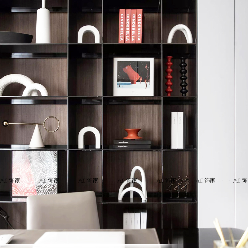 简约现代样板房书房书柜软装创意几何摆件抽象桌面雕塑家居装饰