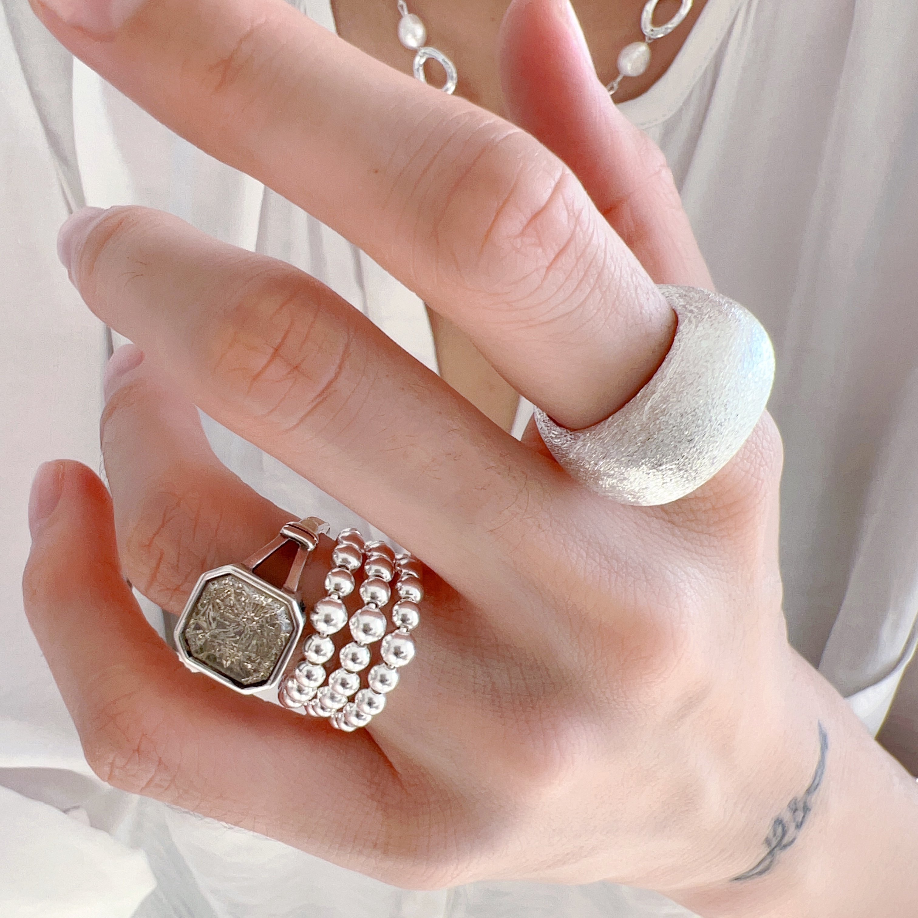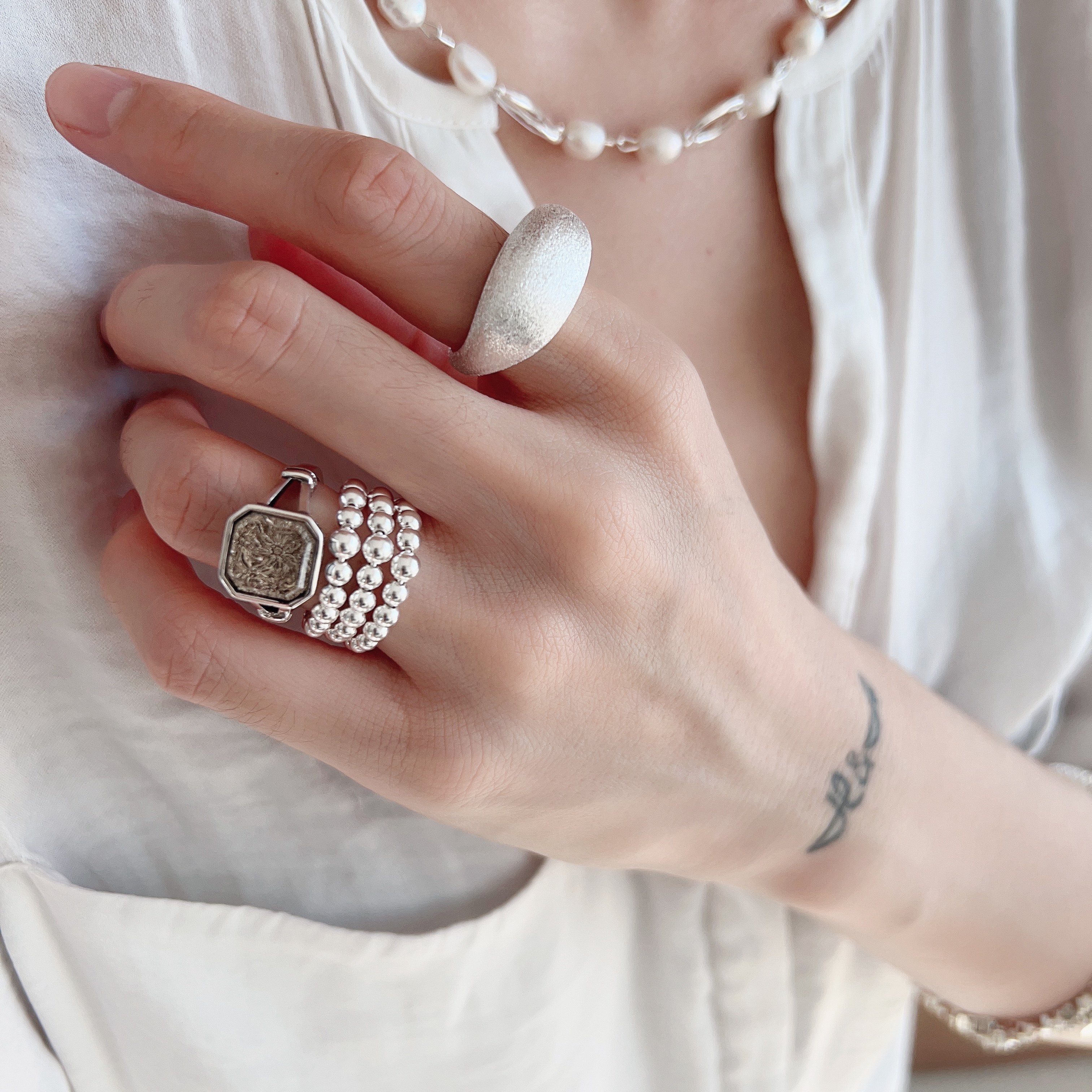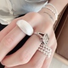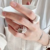 鸽子蛋拉丝夸张戒指925纯银素简椭圆形指环开口可调节尺寸指圈