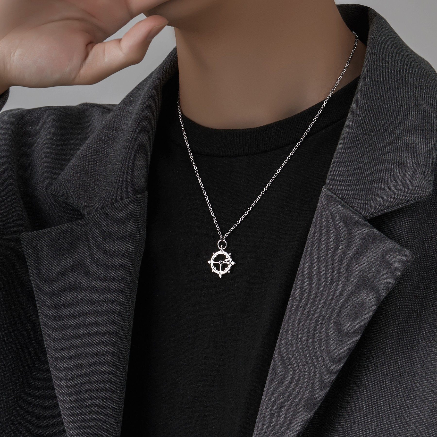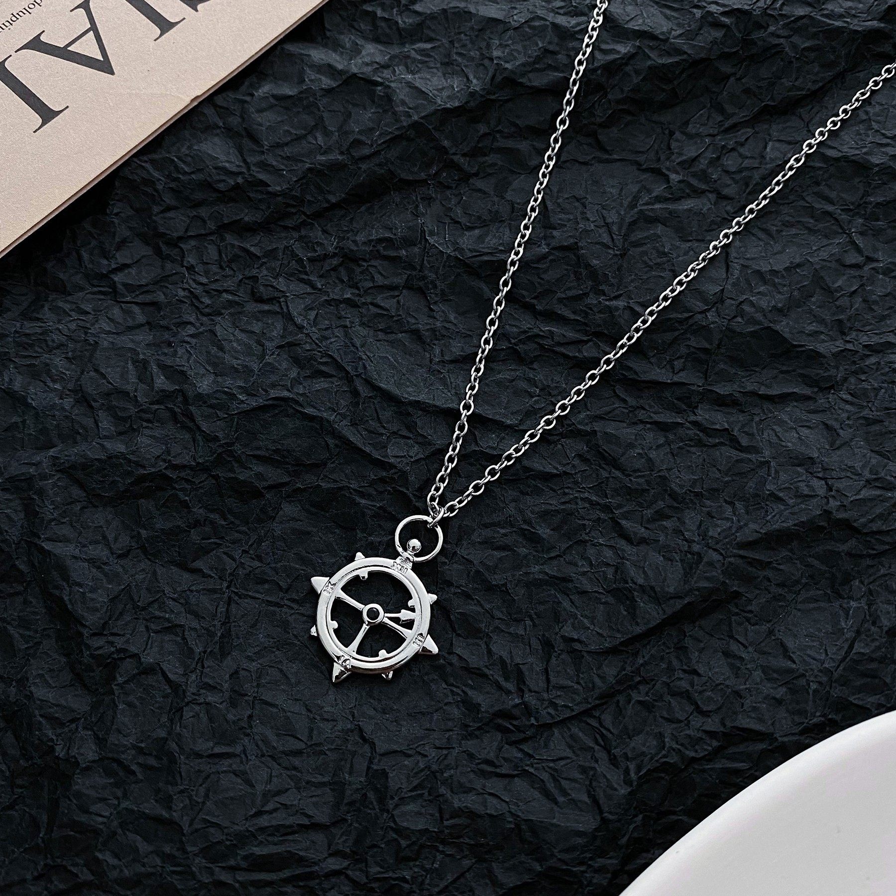 船舵吊坠项链男生ins高级设计感小众锁骨链男潮轻奢百搭男士饰品