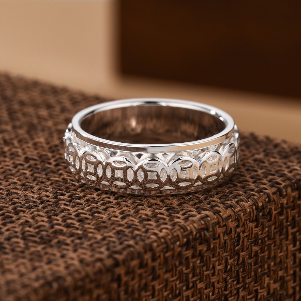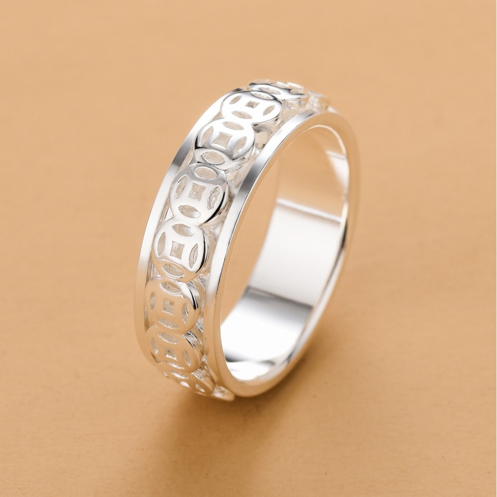 S999纯银可转动古钱币戒指戒解压款闭口旋转转运个性创意食指指环