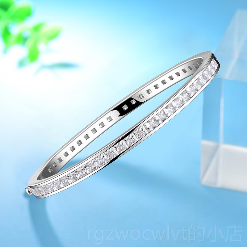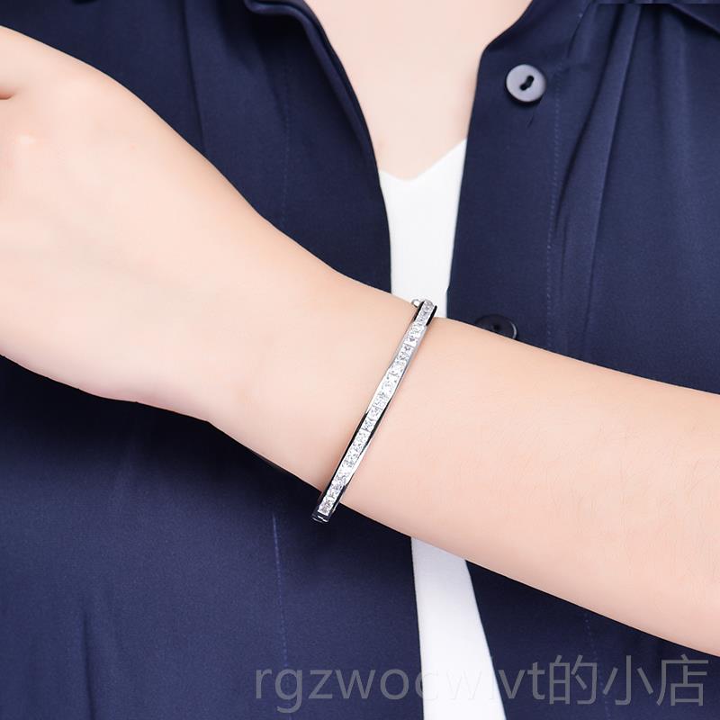 新款蝶珠宝公主方s仿钻石手镯纯卓银镀金in风方情侣手镯男女新钻