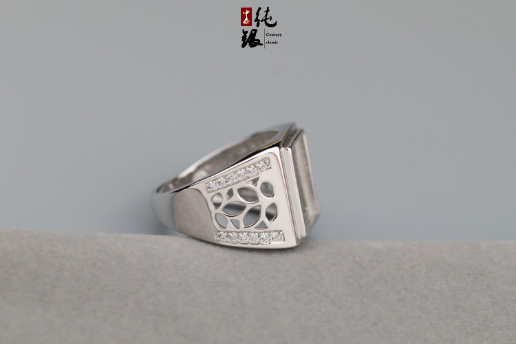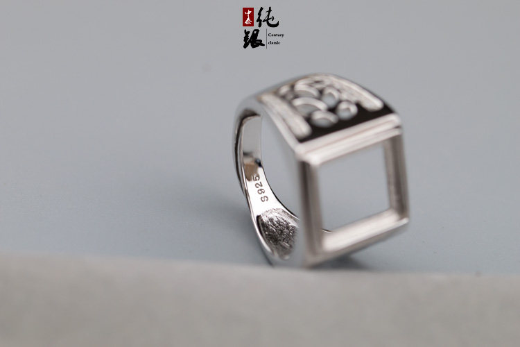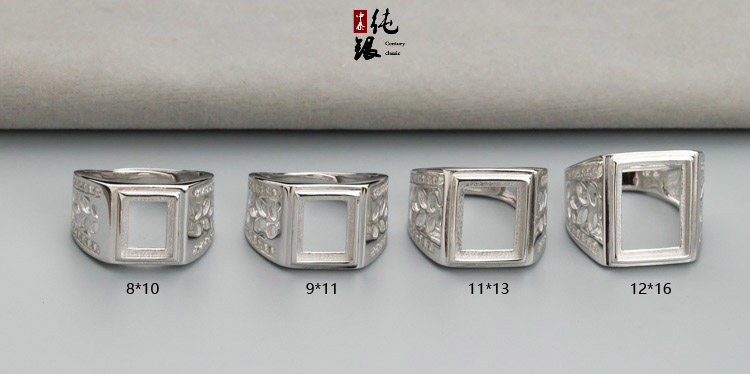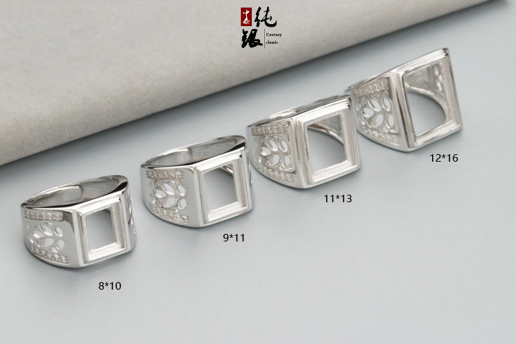 S925纯银大气光面镂空方形戒指托空托戒托8*10 9*11 11*13 12*16