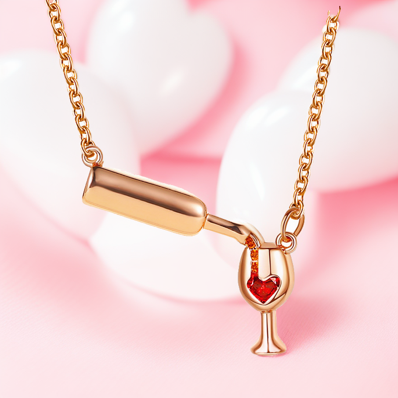 醉爱你红酒杯瓶情侣项链心里都是爱表白爱心锁骨链情侣生日礼物