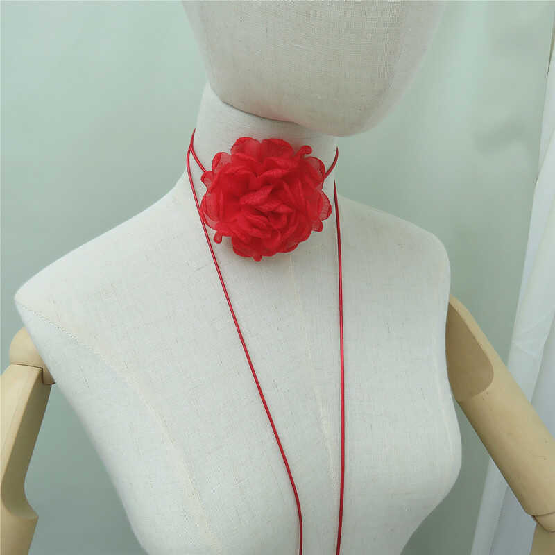复古黑色项圈项链脖子布艺花朵玫瑰绑手腕花多功能绑带腰项链颈圈