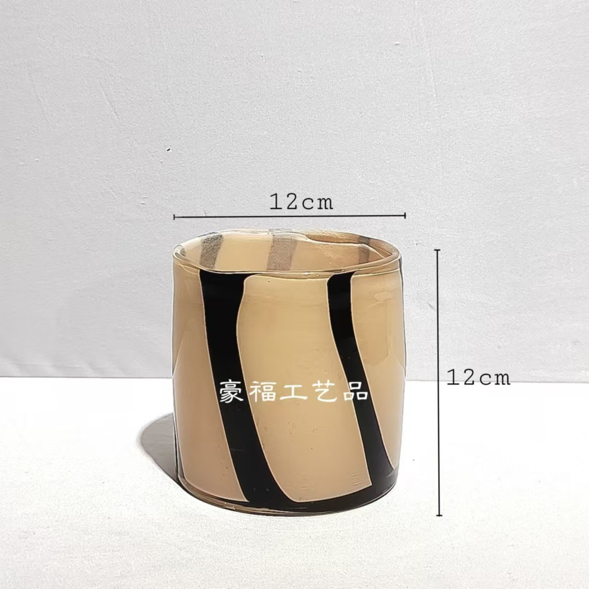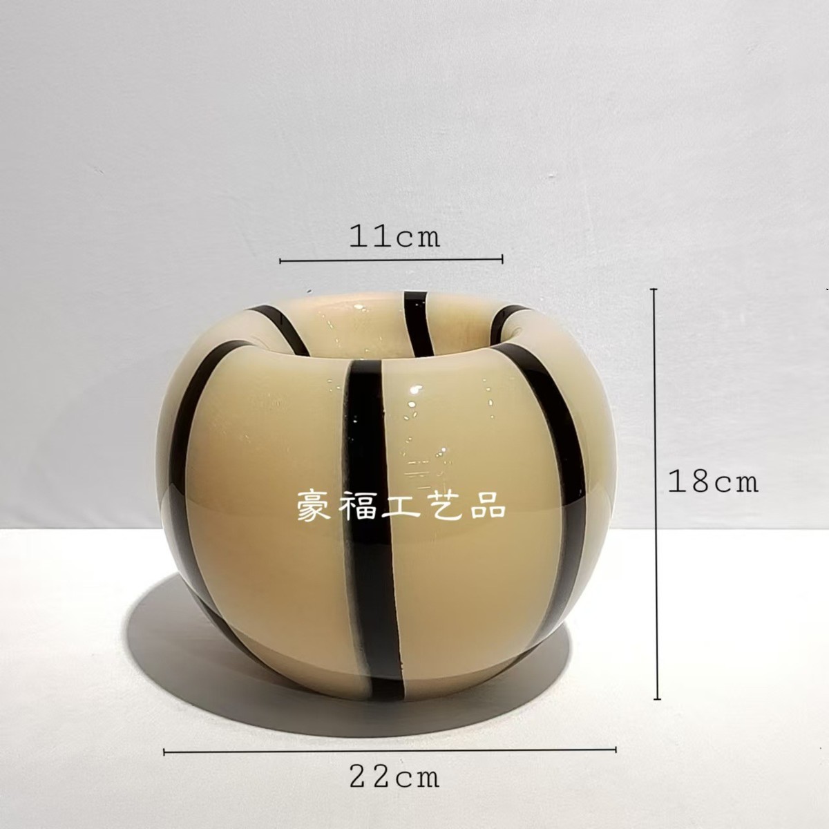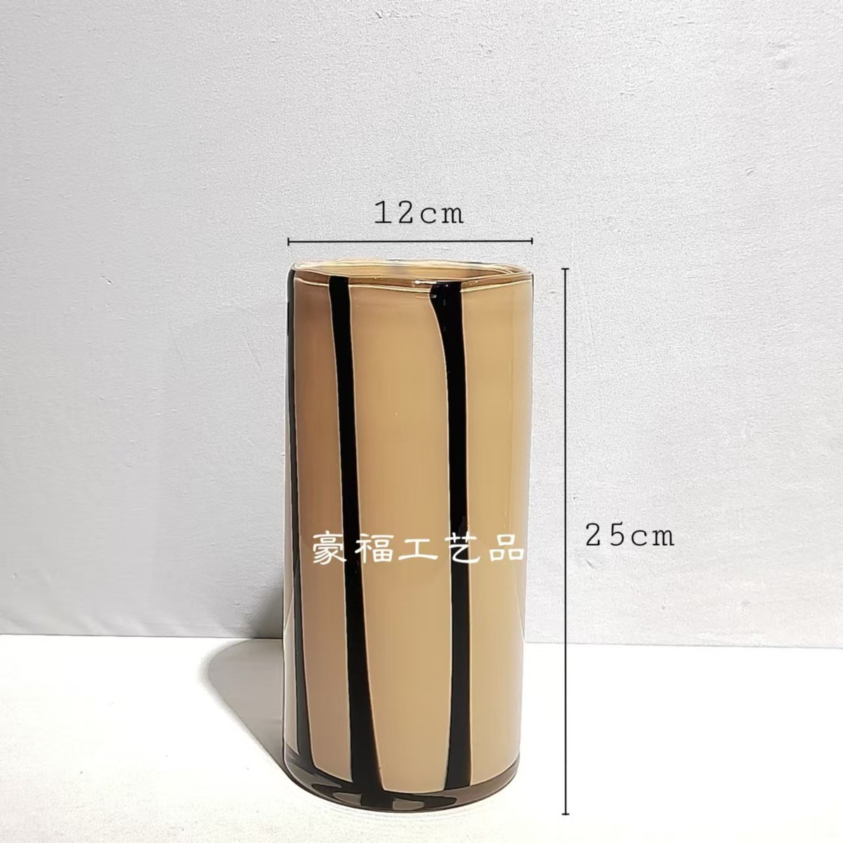 北欧创意黑色家居玻璃花瓶摆件条纹样品房餐厅桌面软装设计