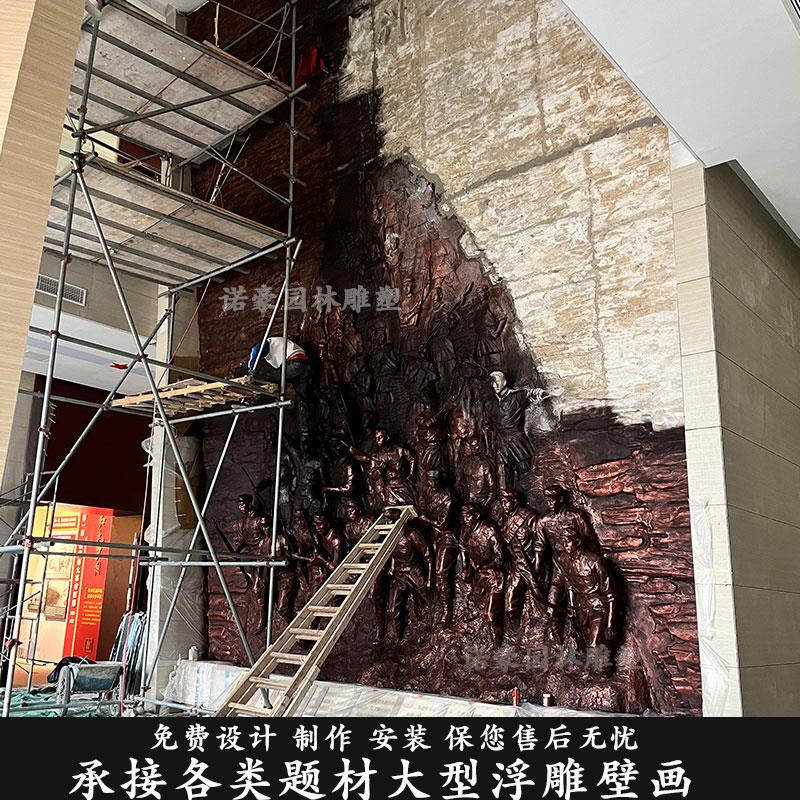 定制玻璃纤维浮雕锻铜彷铜红军人物铸铜校园浮雕红色文化背景墙雕