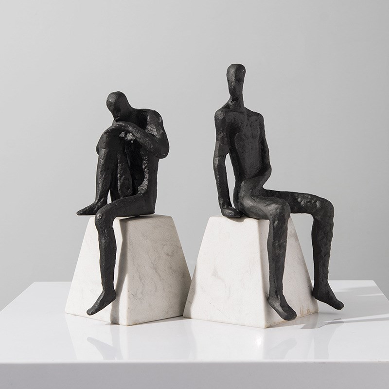 新中式抽象铸铁金属人物摆件样板间G书房办公室酒柜书柜装饰品