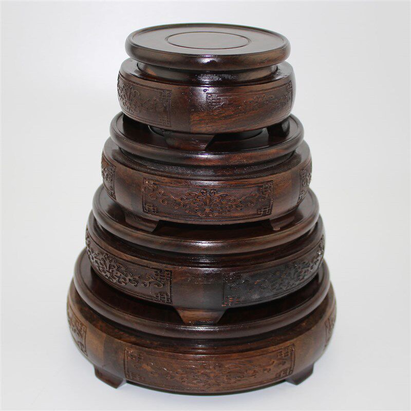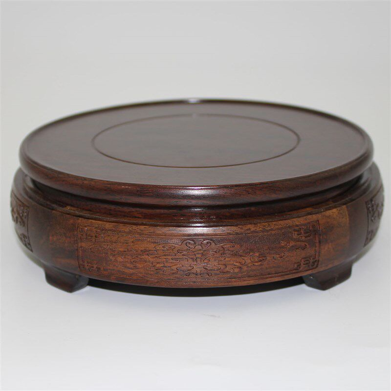 奇石底座 工艺品摆件 圆形 多层 茶壶实木底座高端版 古瓷都苑