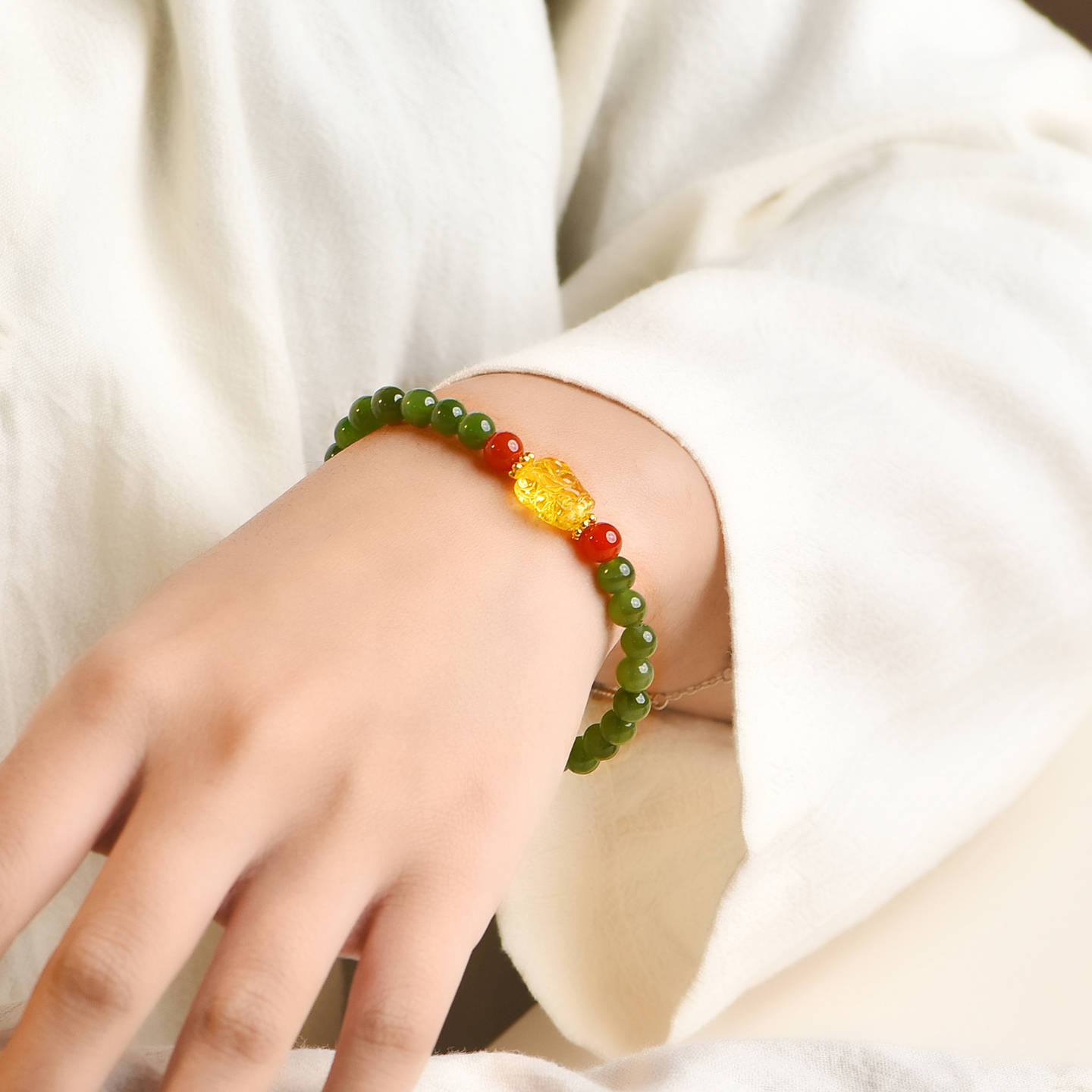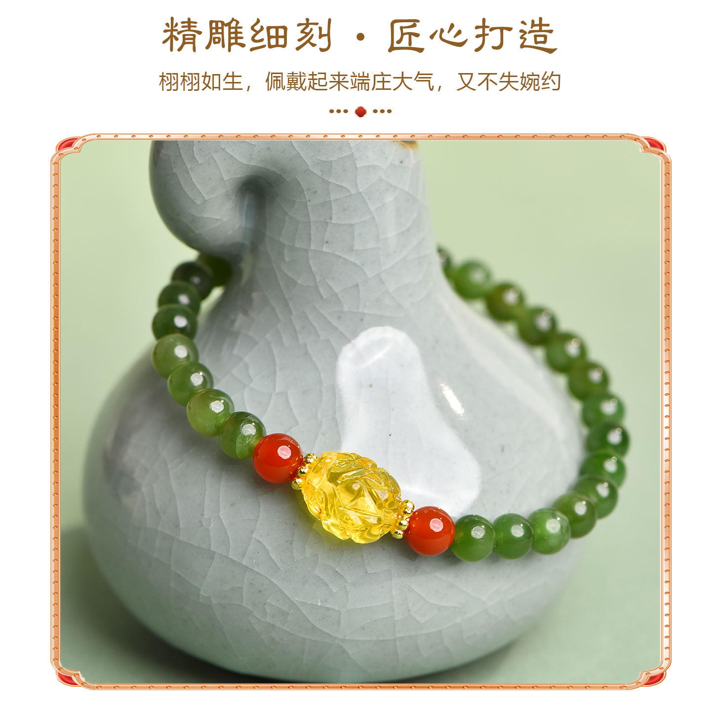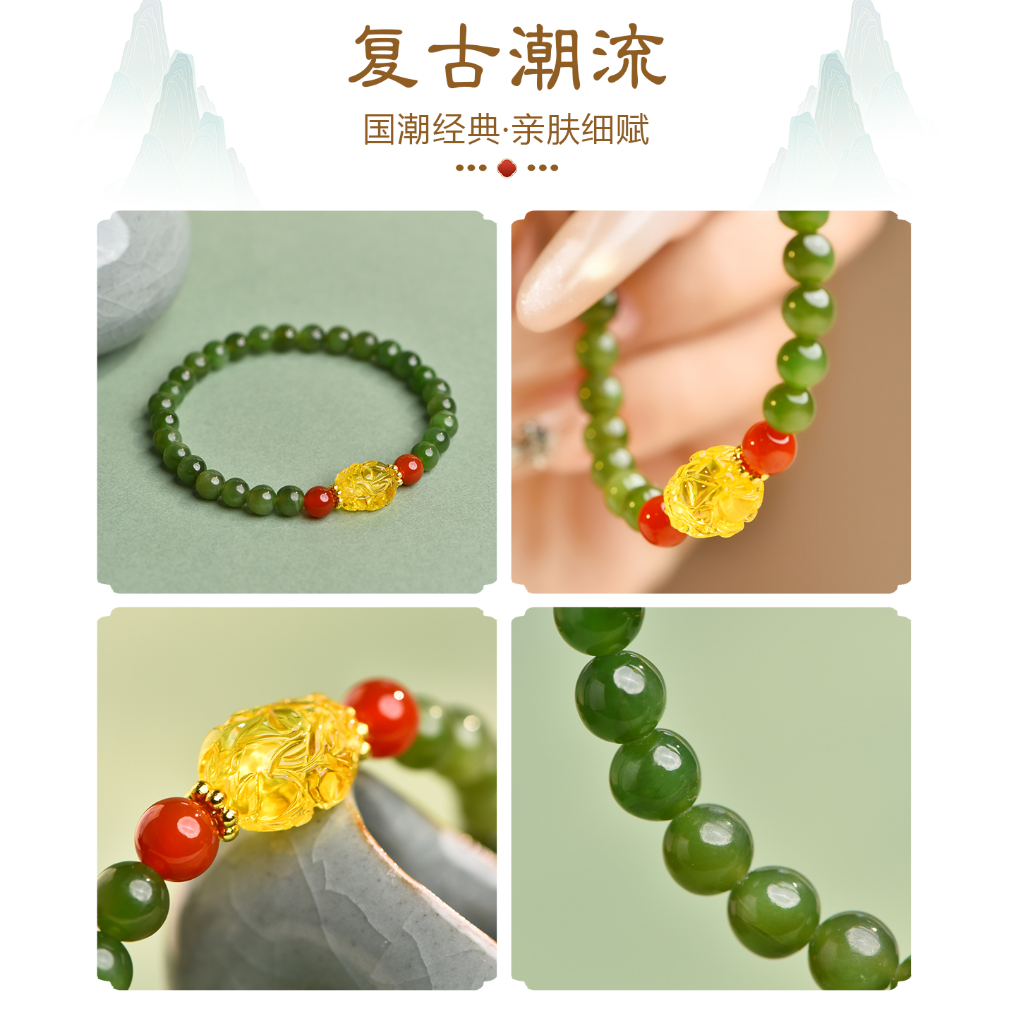 和田玉碧玉手串diy蜜蜡手链小众设计菠菜绿女款新中式国风手饰