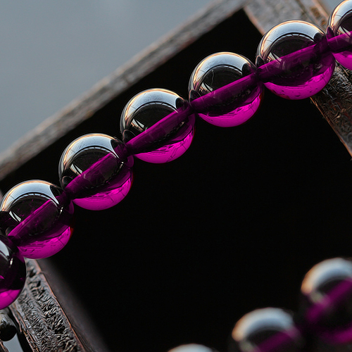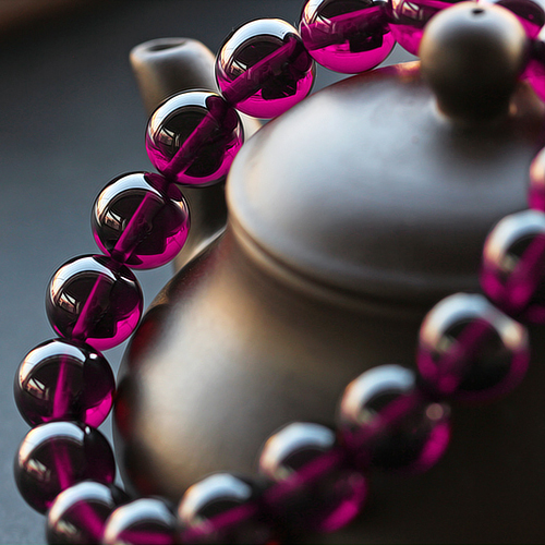 碧雅正品石榴石手链 玫红色石榴石 紫牙乌11mm 女款大颗玻璃体透
