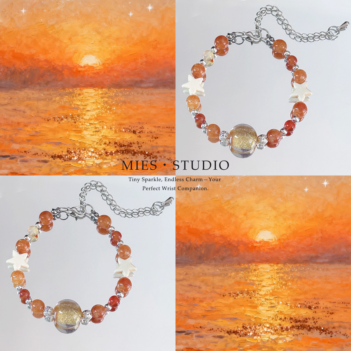 【星烟绯光】MIES原创油画风天然石水晶珠手链星星装饰高级感手串