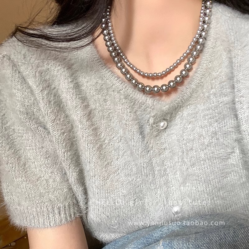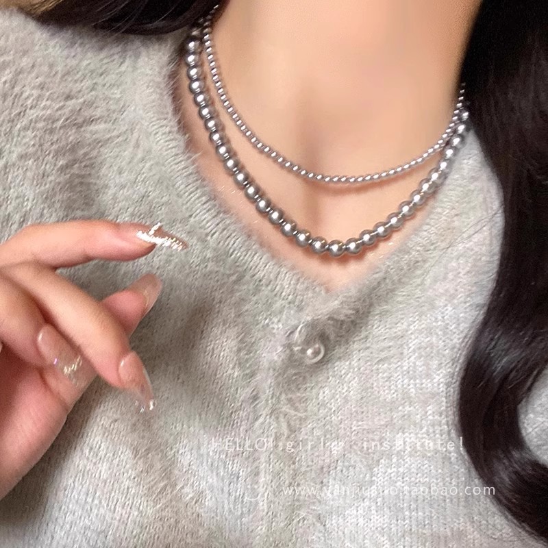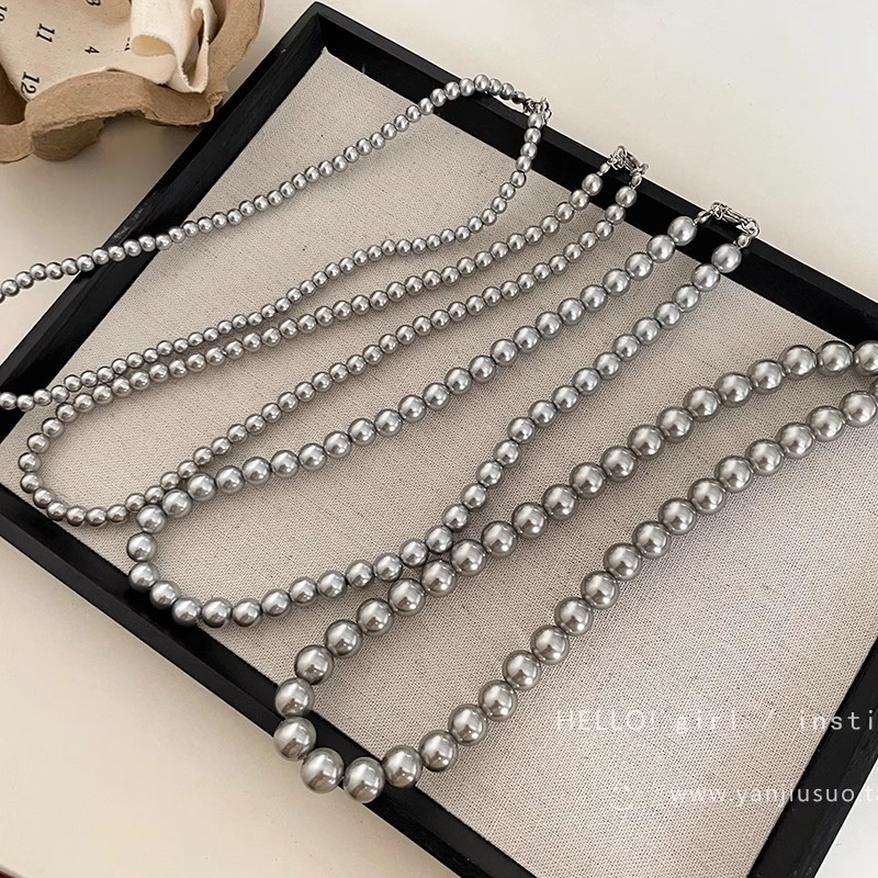 麻灰色小众珍珠项链2025新款爆款秋冬毛衣链配饰高级感法式锁骨链
