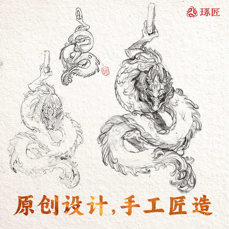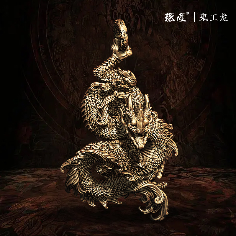 鬼工龙|琢匠生肖龙吊坠汽车钥匙扣挂坠男士纯黄铜小挂件背包挂饰