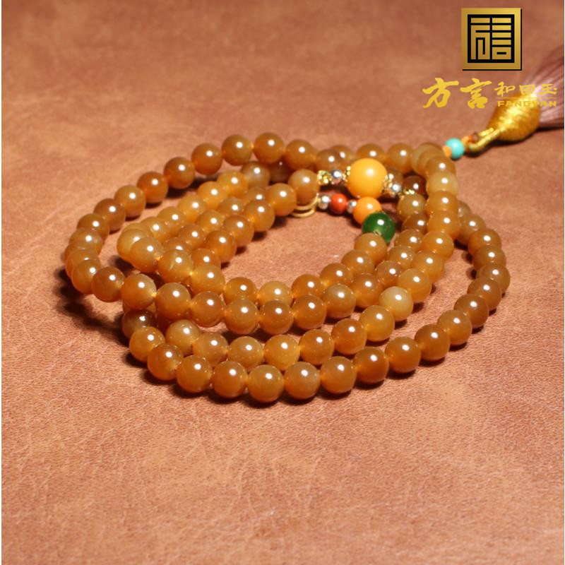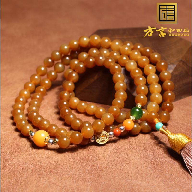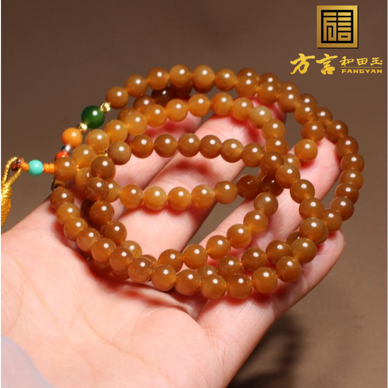 亏本价方言和田玉新疆且末金山矿黄金糖玉6mm圆珠项链多圈手串A6
