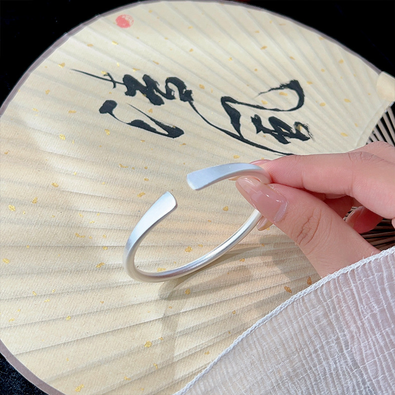 镯子小众扁尾素圈手环礼物银古法开口实心手镯女简约9999足纯银