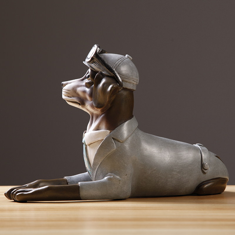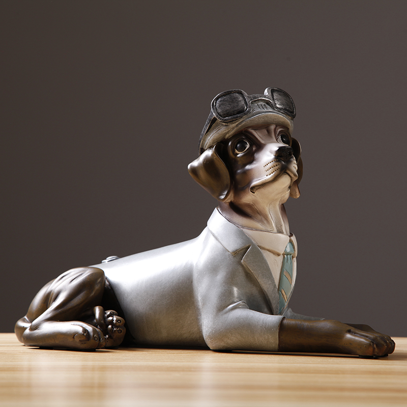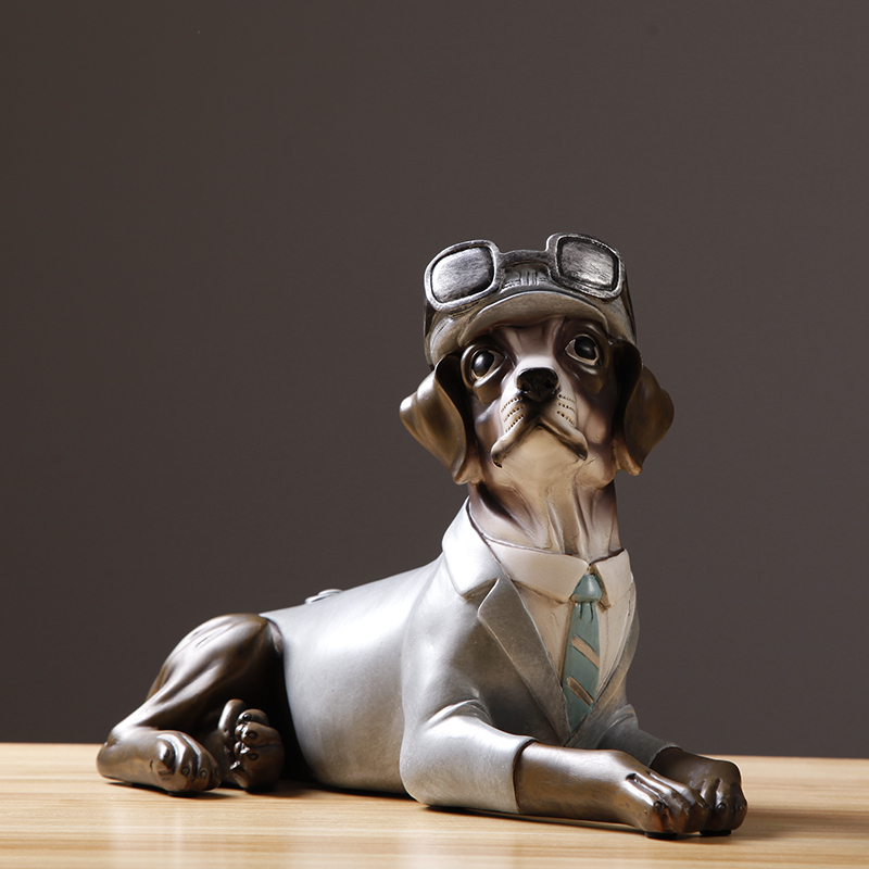 北欧美式复古创意招财狗摆件办公室酒柜客厅装饰品摆设工艺品礼物