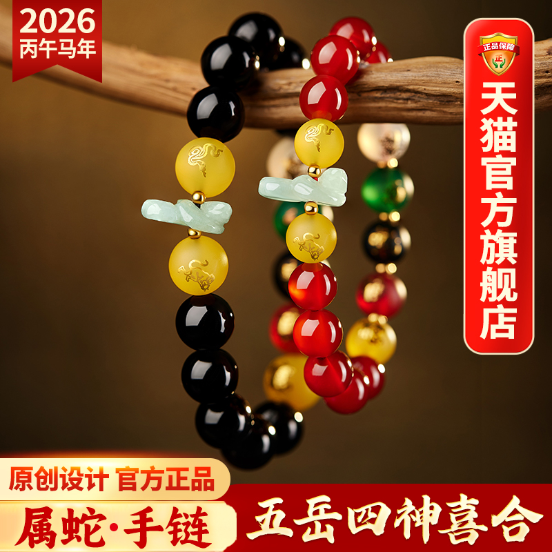 易明居五岳四神喜合吉宏手链2026马年属蛇人佩戴吉祥物红玛瑙手串