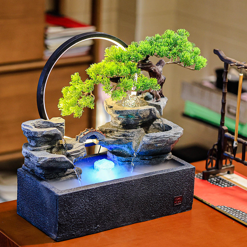 新中式招财风水轮循环流水喷泉水景观客厅摆件桌面软装饰品养鱼缸