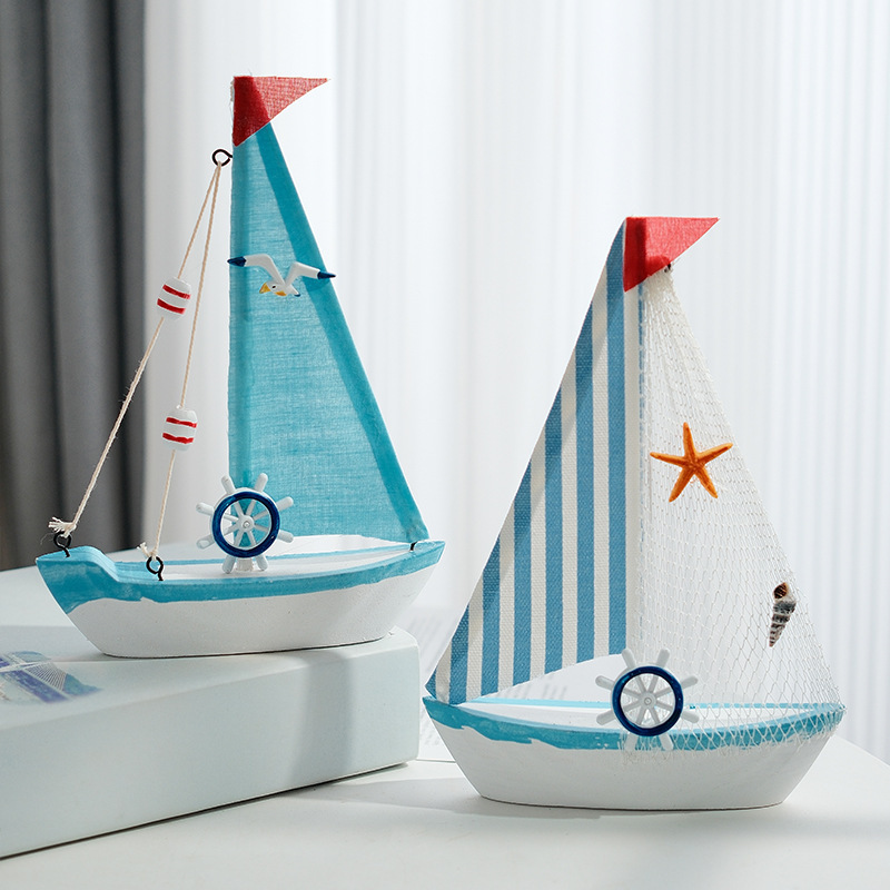 地中海创意家居装饰摆件木质做旧工艺帆船模型蛋糕道具拍摄摆设