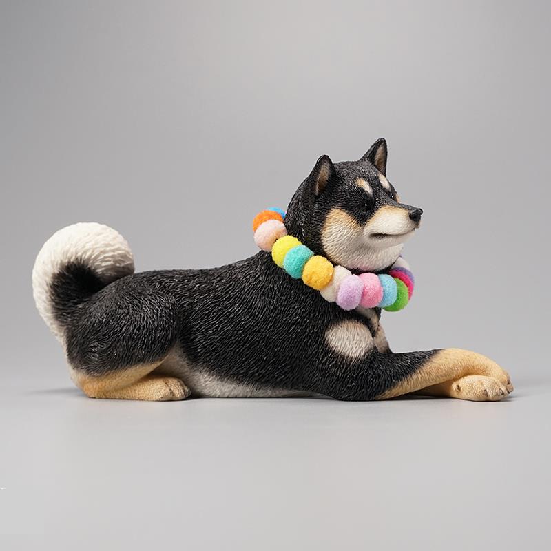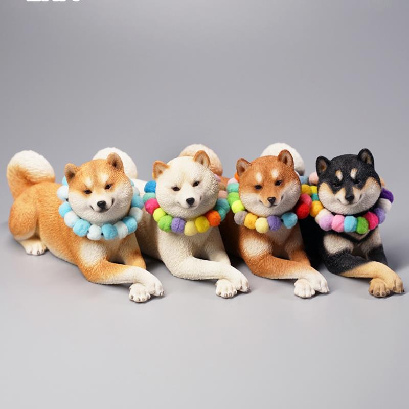 JXK官方正品1/6卧姿柴犬模型汽车载摆件柴犬手办治愈系桌面小摆件