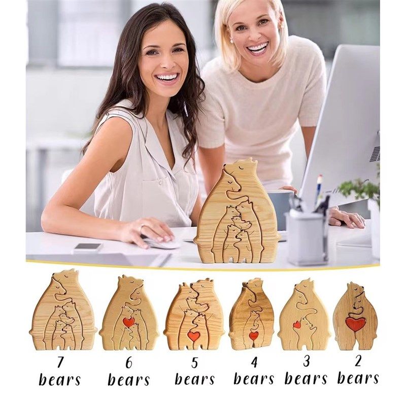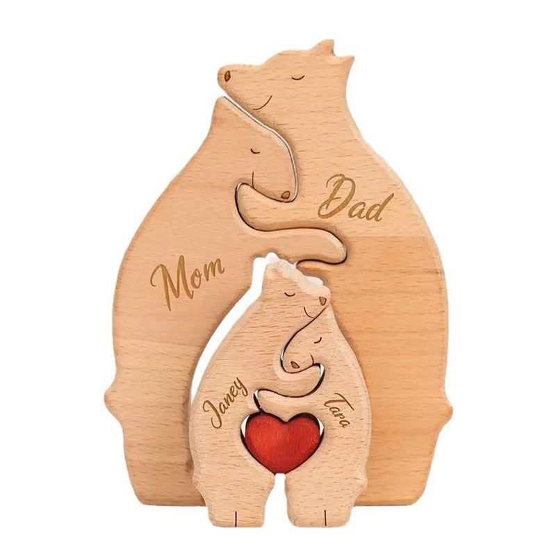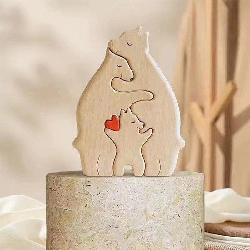优选木质母子熊套装拼图卧室客厅桌面熊抱一家人摆件实木工艺品