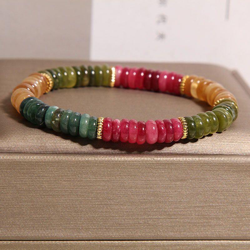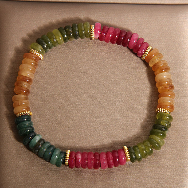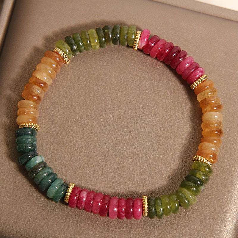 新中式彩色碧玺算盘珠手链女款轻奢小众高级感玉石手串送闺蜜礼物