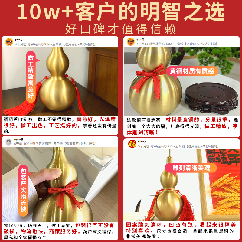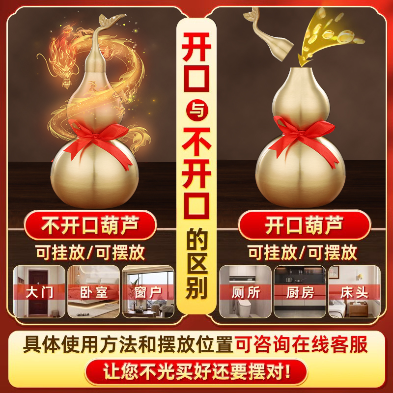 纯黄铜葫芦摆件八卦挂件招财开口开盖空心家居客厅玄关办公室摆设