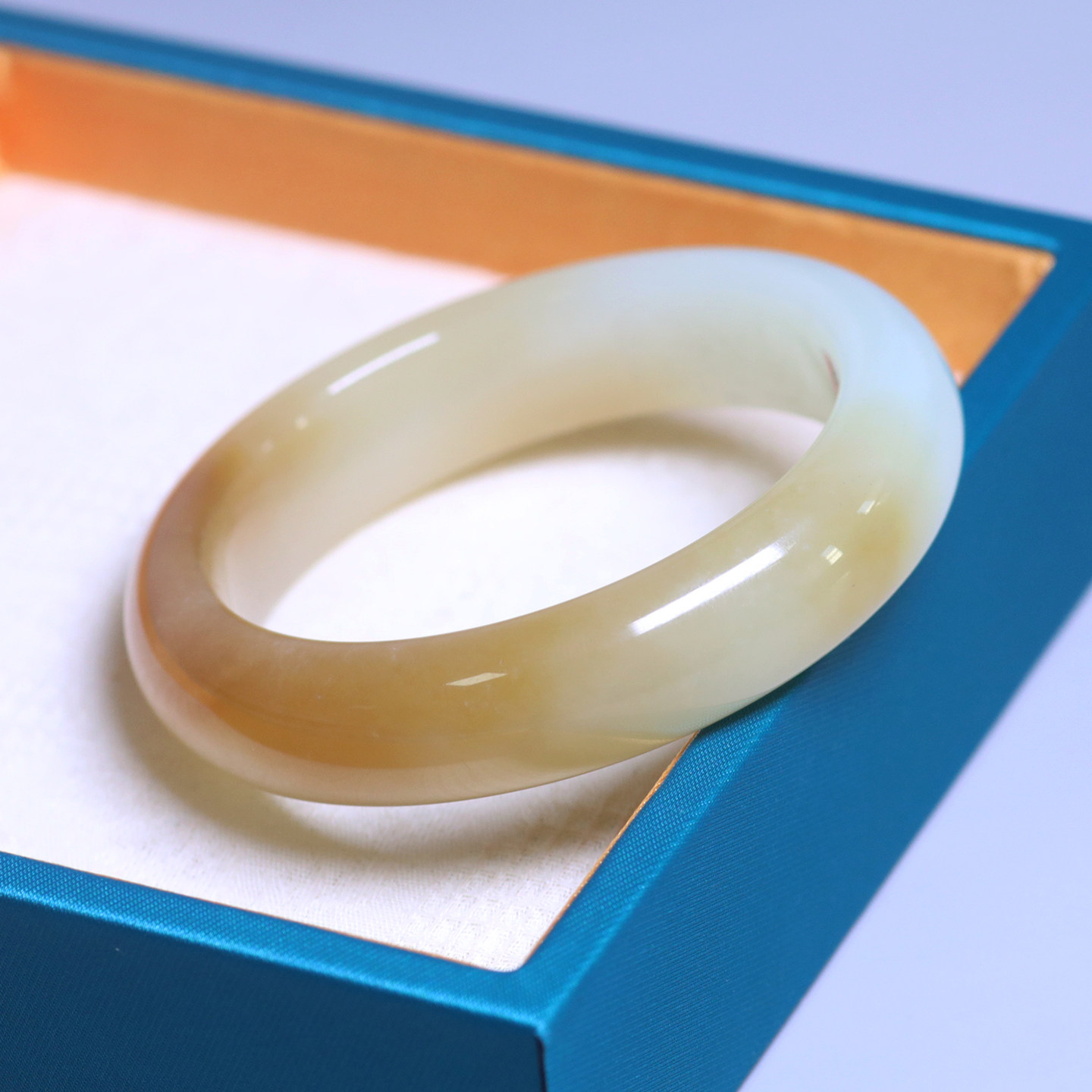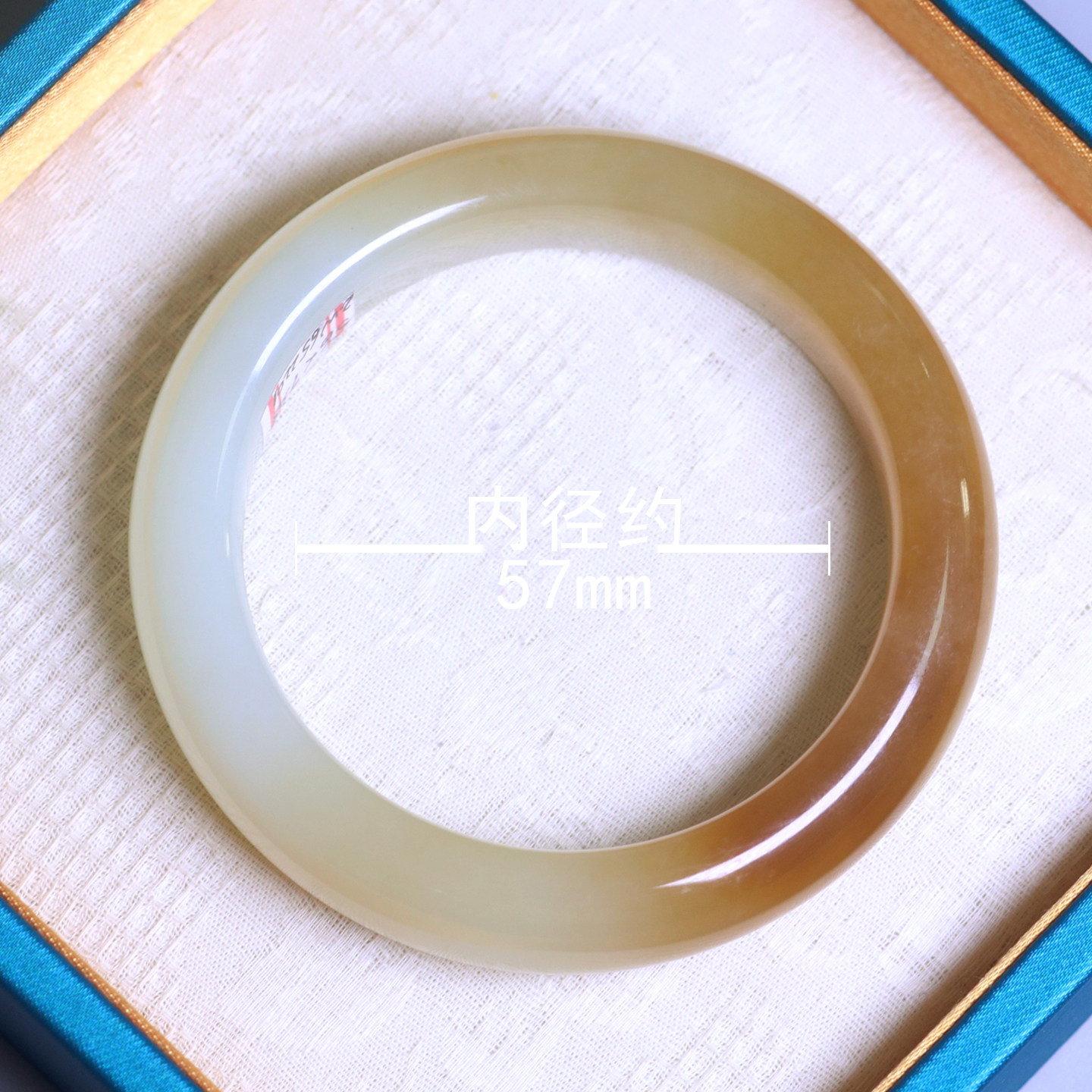 珪宝57mm和田玉糖白玉宽条手镯女款温润玉镯子天然玉石带证书礼物