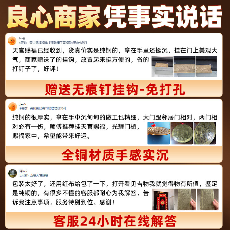 天官赐福门贴挂件牌匾纯铜入户门对邻居大门对门卧室乔迁送礼搬家