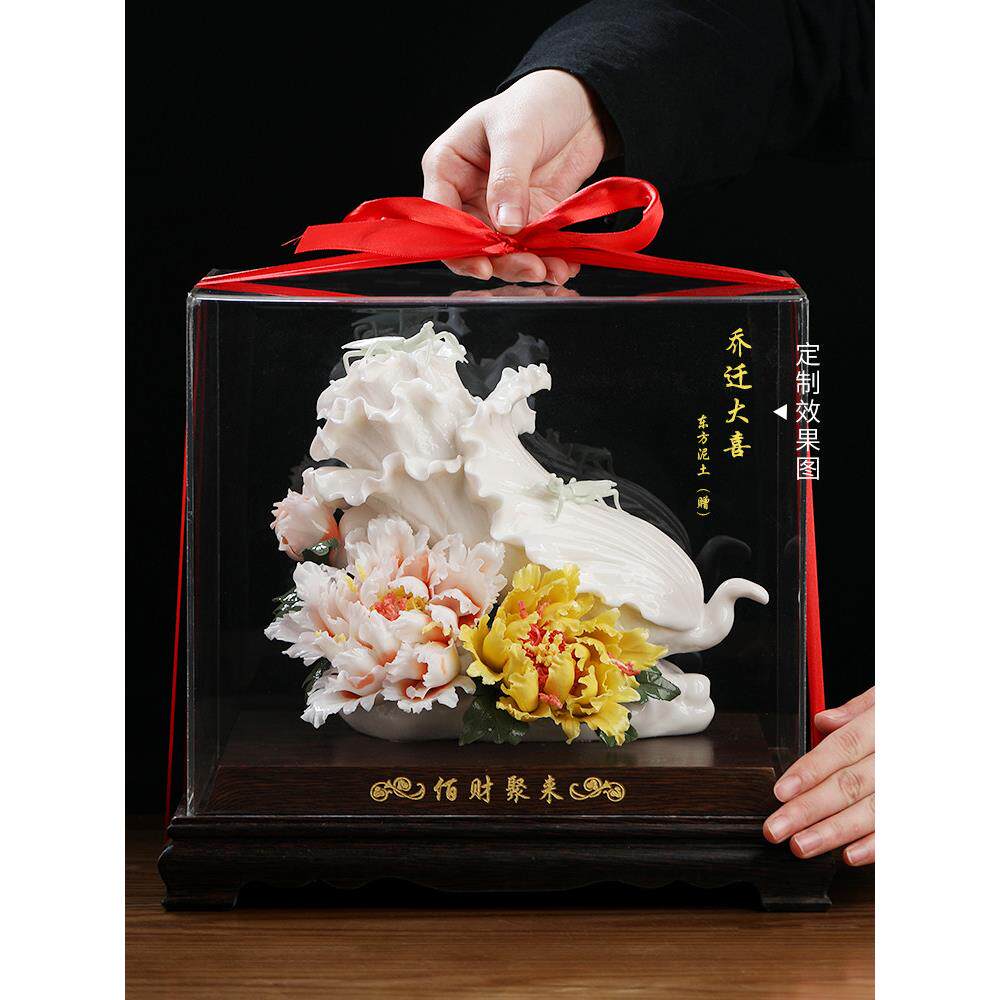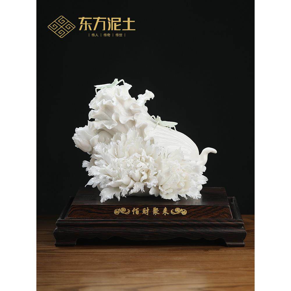 东方粘土白财富聚会开幕乔迁礼品陶瓷白菜工艺品博古货架带来财富