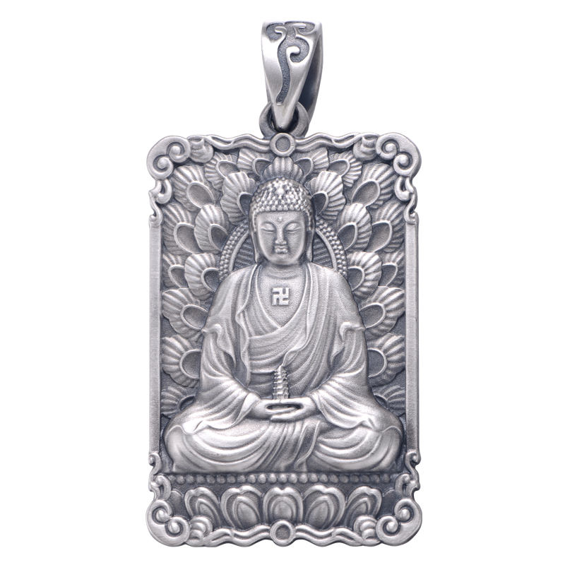 上尊男饰 药师佛吊坠 男 足银999 泰银项链 三宝佛像佛牌刻字饰品