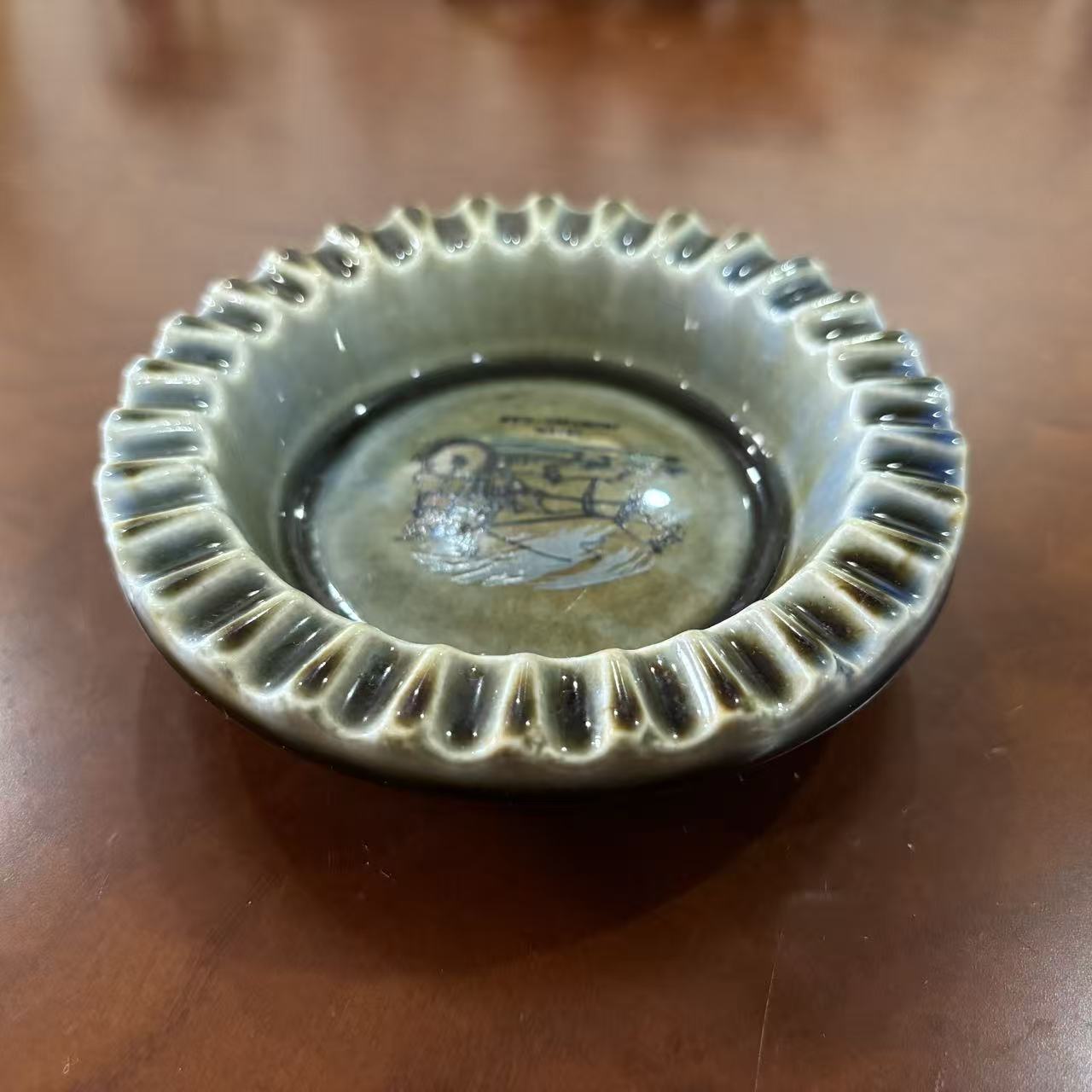 Frich Porcelain 爱尔兰旅行车 马车图案老烟缸 稀有陶瓷雪茄皿