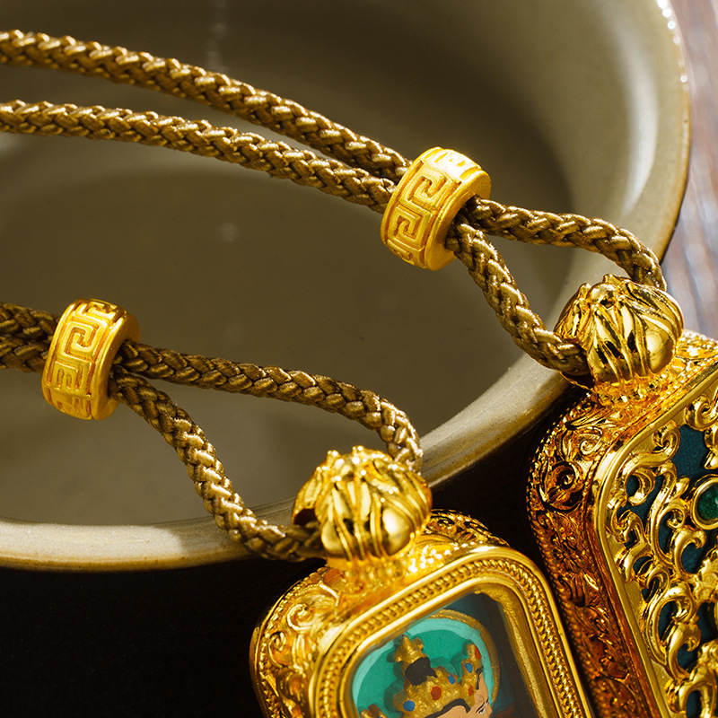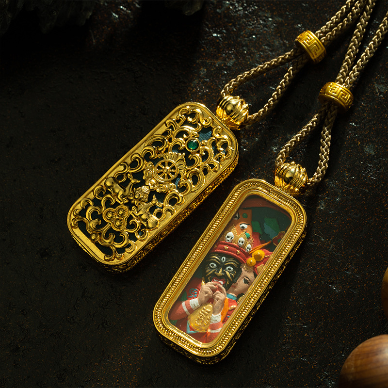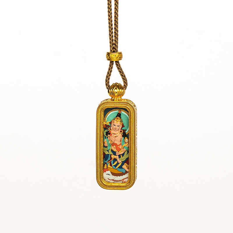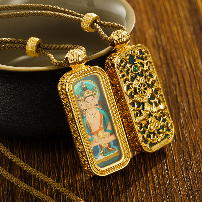 擦擦唐卡黄财绿度母扎基拉姆五爷项链手绘唐卡黄铜嘎乌盒唐卡项链