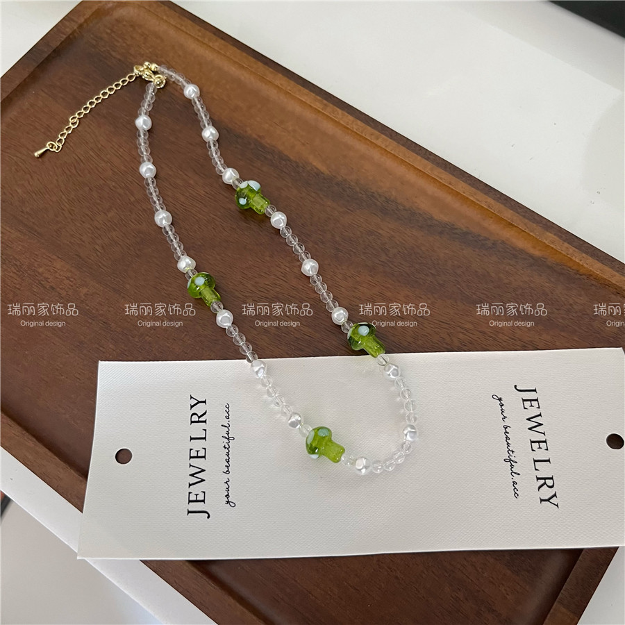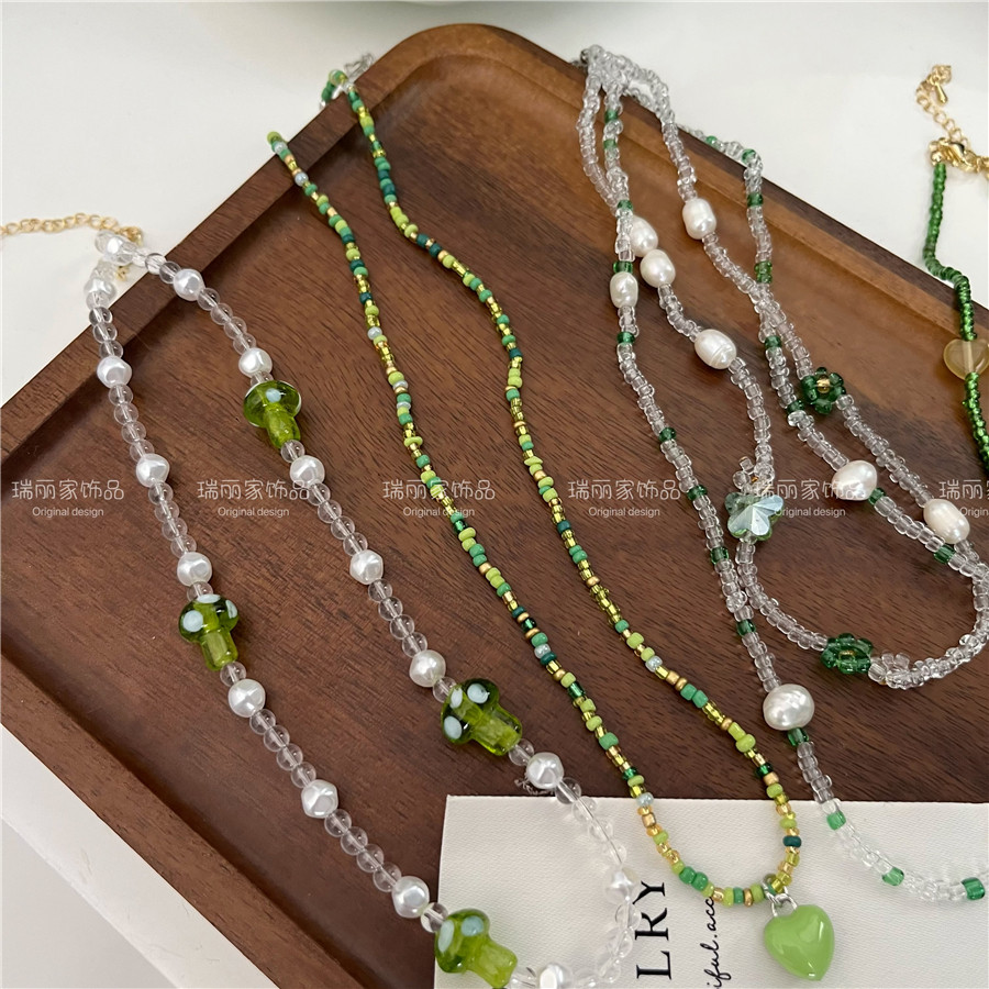 夏薄荷绿色串珠项链合集手作锁骨链choker轻奢高级设计感小众颈链