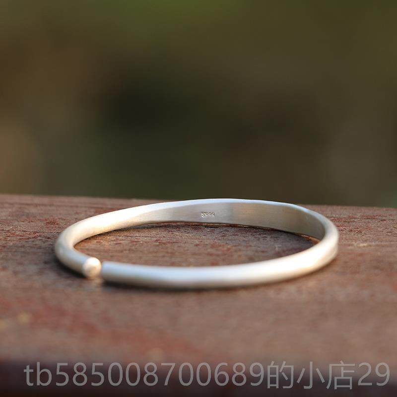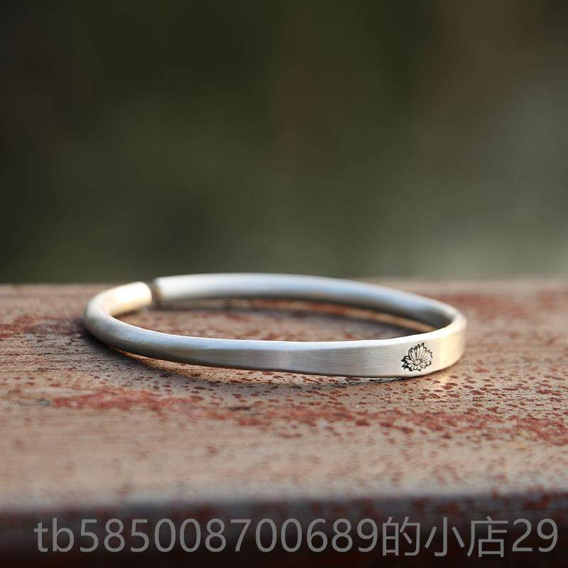 新款999砂致纯银磨古代间扁平雏菊精固体自然文学中覆古手镯