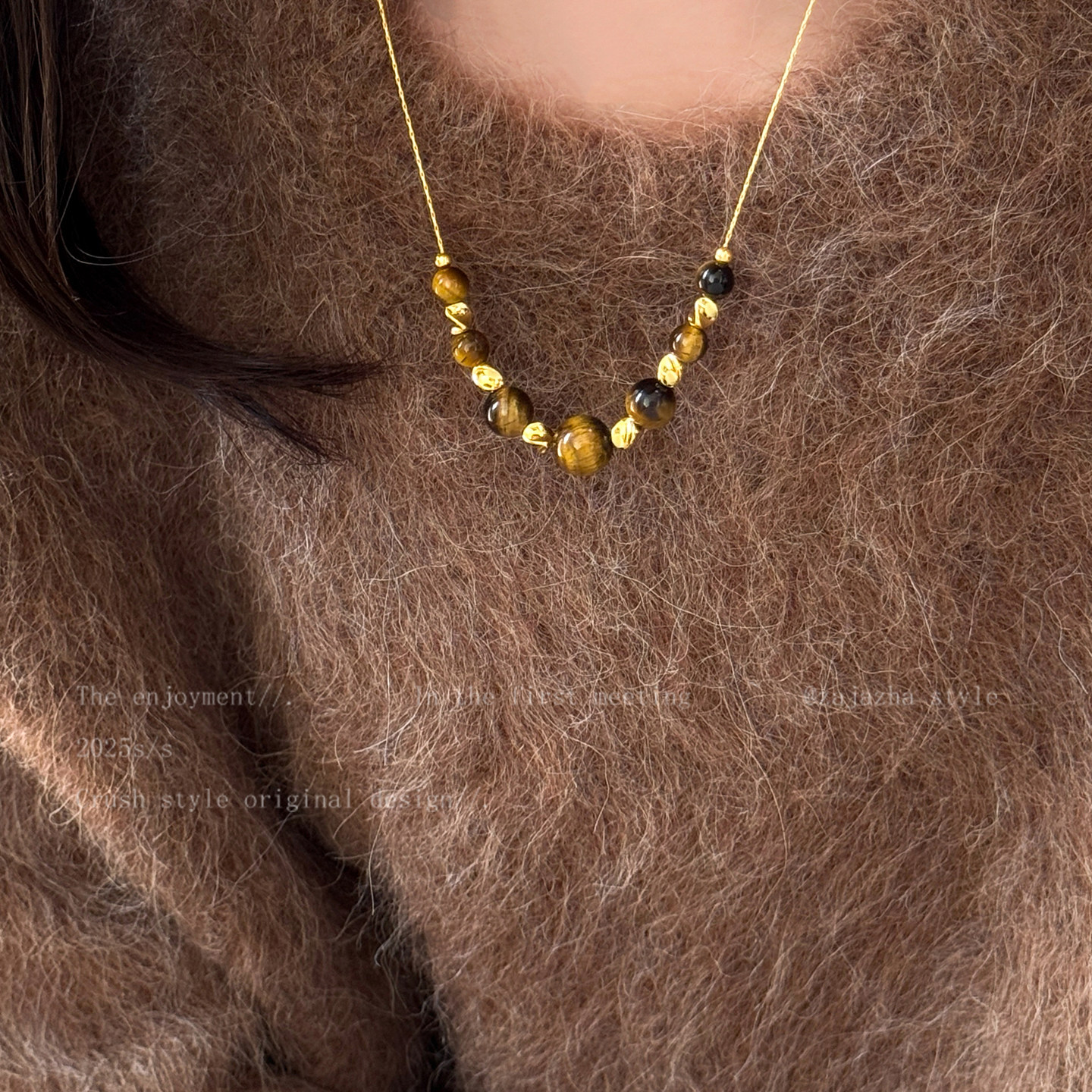 秋冬虎眼石吊坠项链女复古美拉德长款可抽拉毛衣链高级感小众配饰