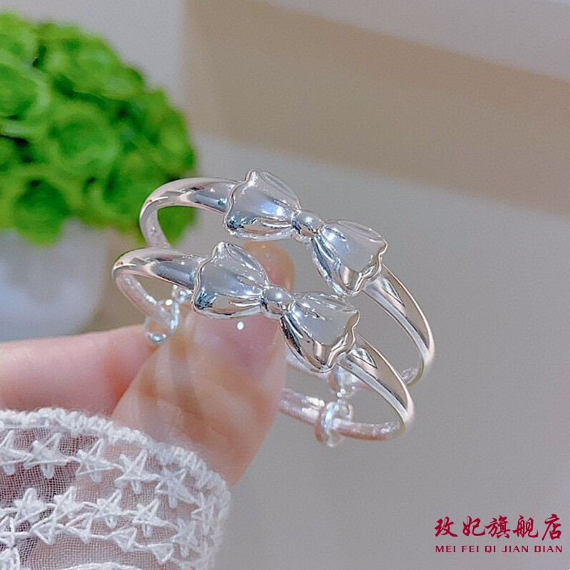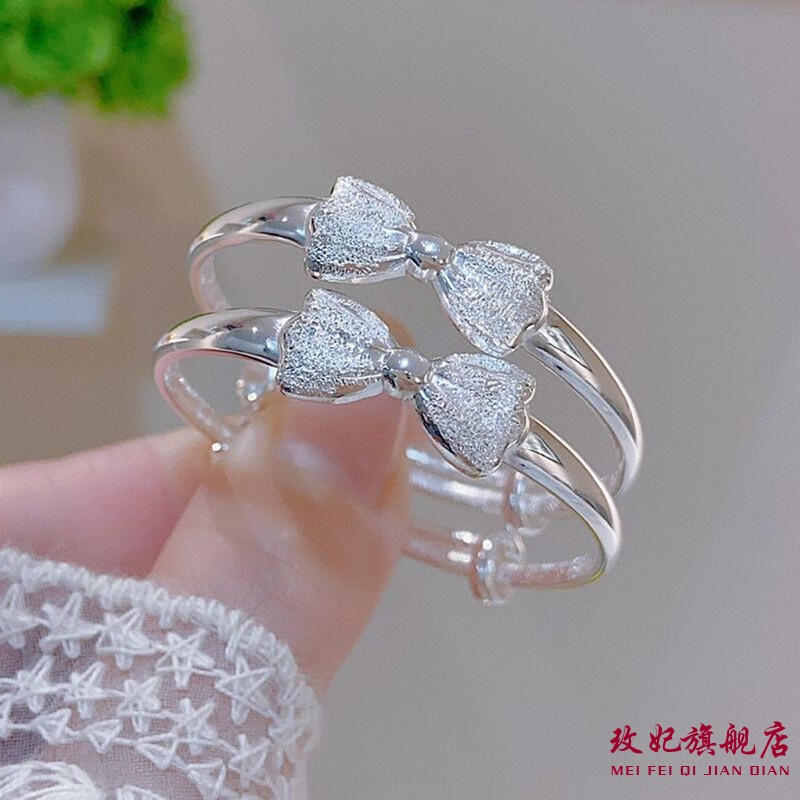 玫妃足银9999蝴蝶结竹节纯银手镯男女宝宝新生婴儿小孩子满月礼物