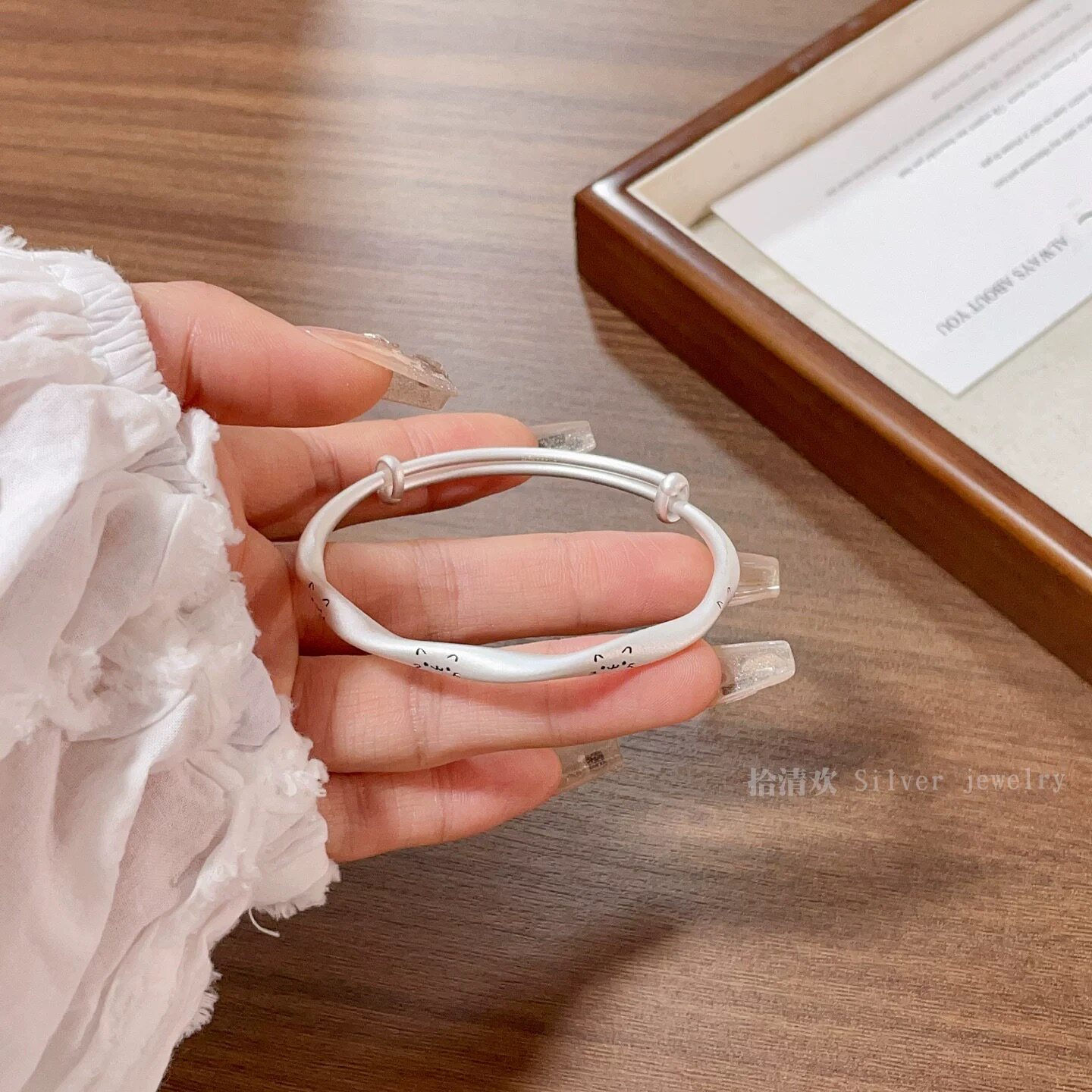 猫咪莫比乌斯环足银999古法推拉实心纯银手镯女年轻款小众手饰品