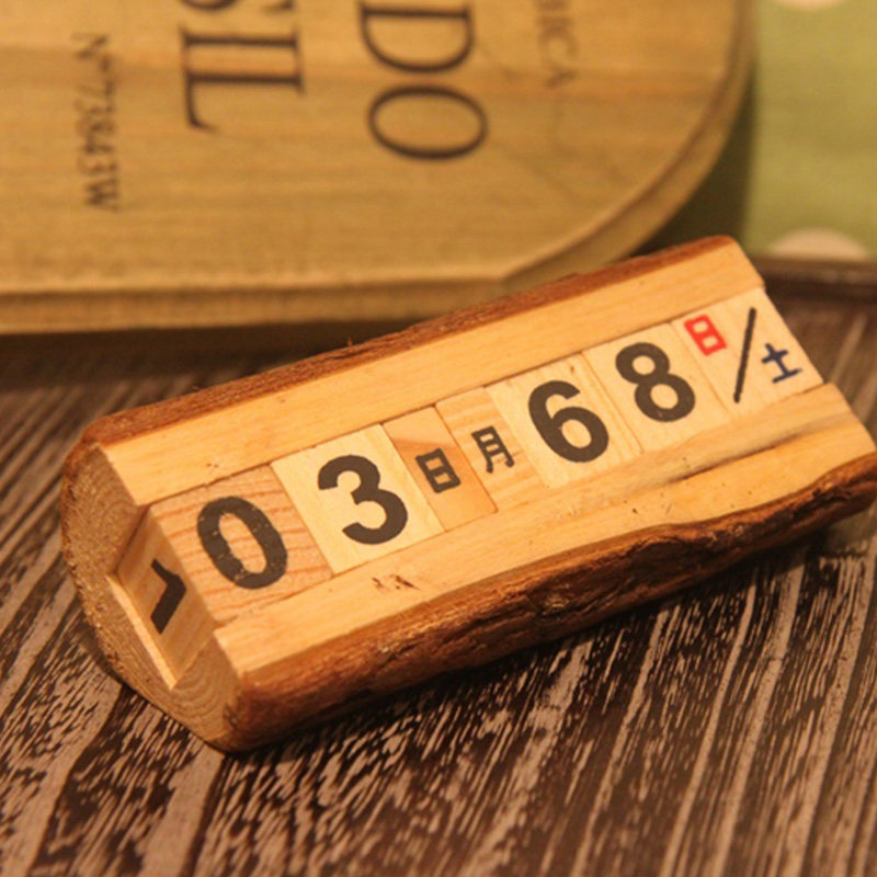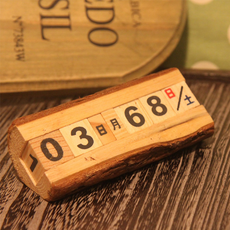 外贸zakka风格创意木质小摆件原木万年历DIY台历桌面装饰摄影道具