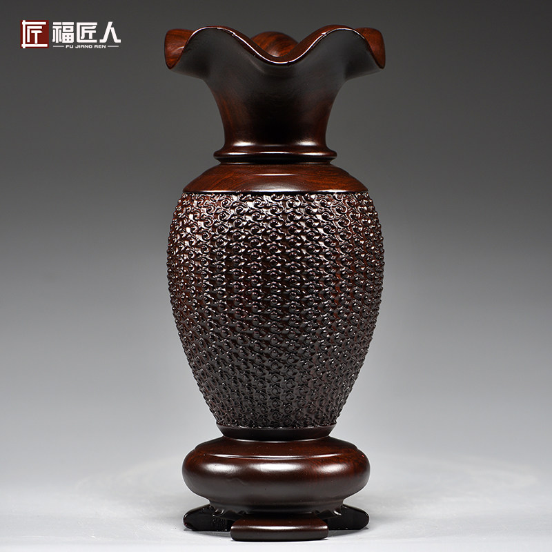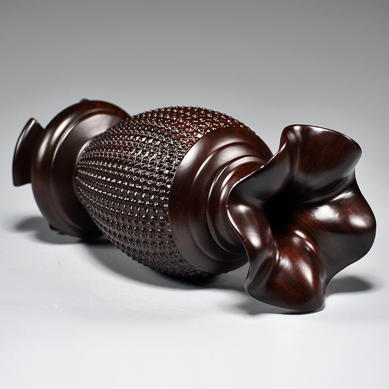 黑檀木雕刻花瓶摆件家居客厅电视柜新中式花瓶装饰工艺品乔迁送礼