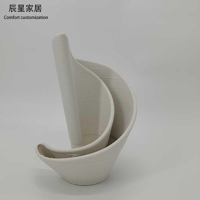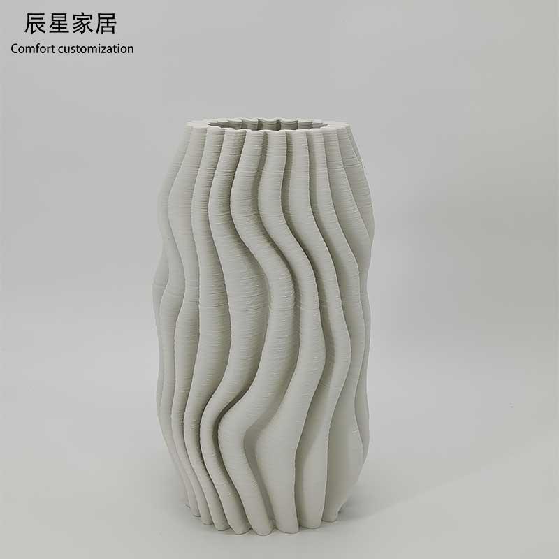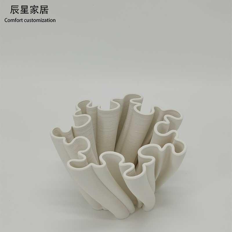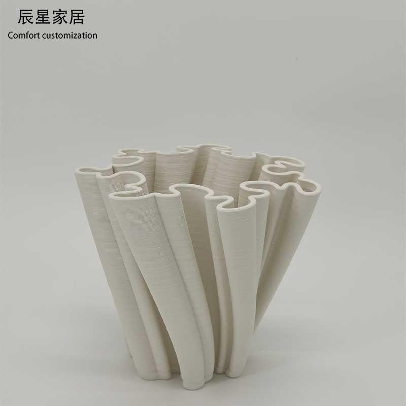 现代创意3D打印皱褶陶瓷花器设计感艺术装饰品样板间客厅桌面摆件