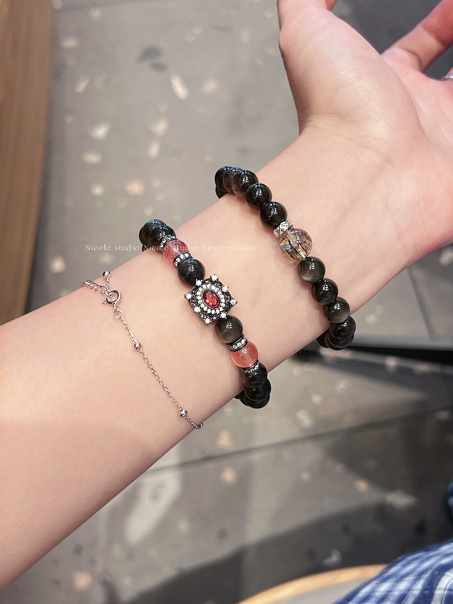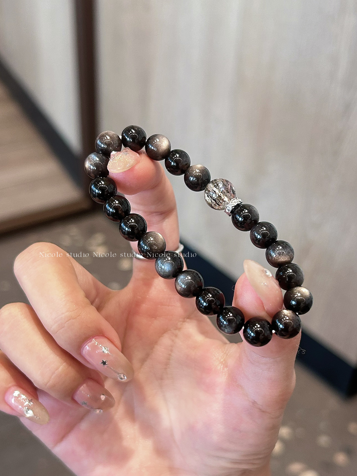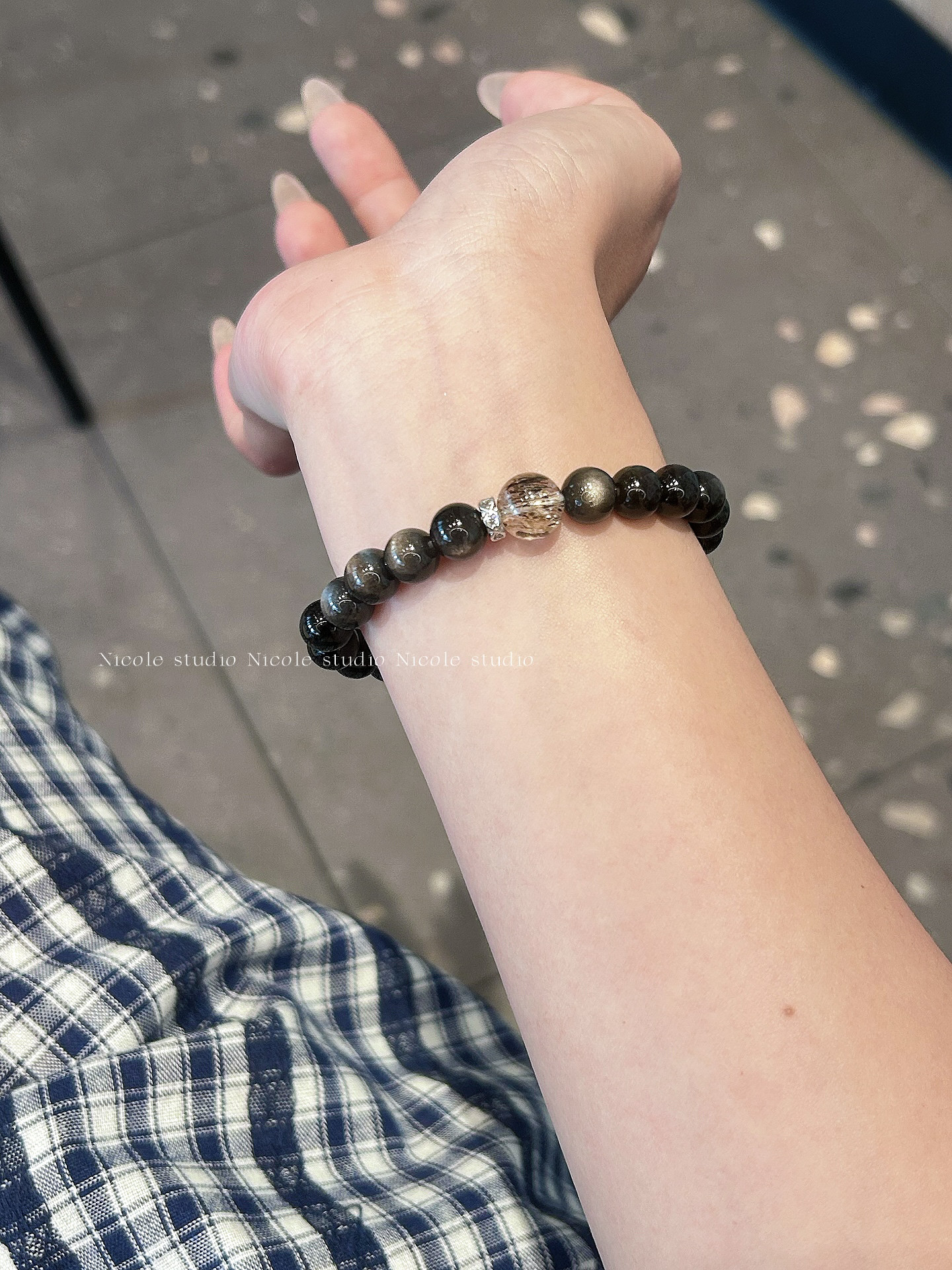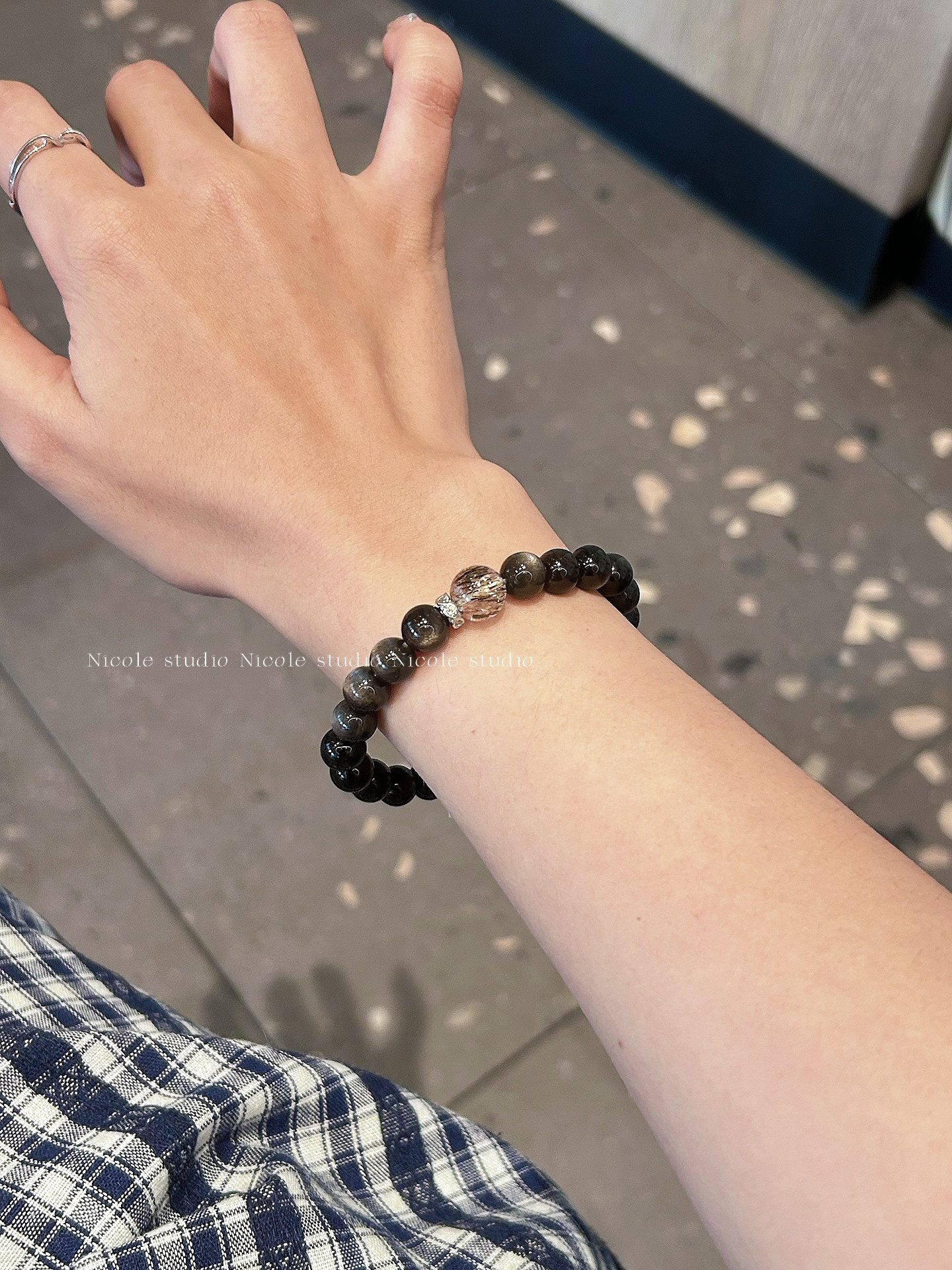 Nicole「黑祭司」原创天然银曜石手串黑金超七转运手链高级礼物