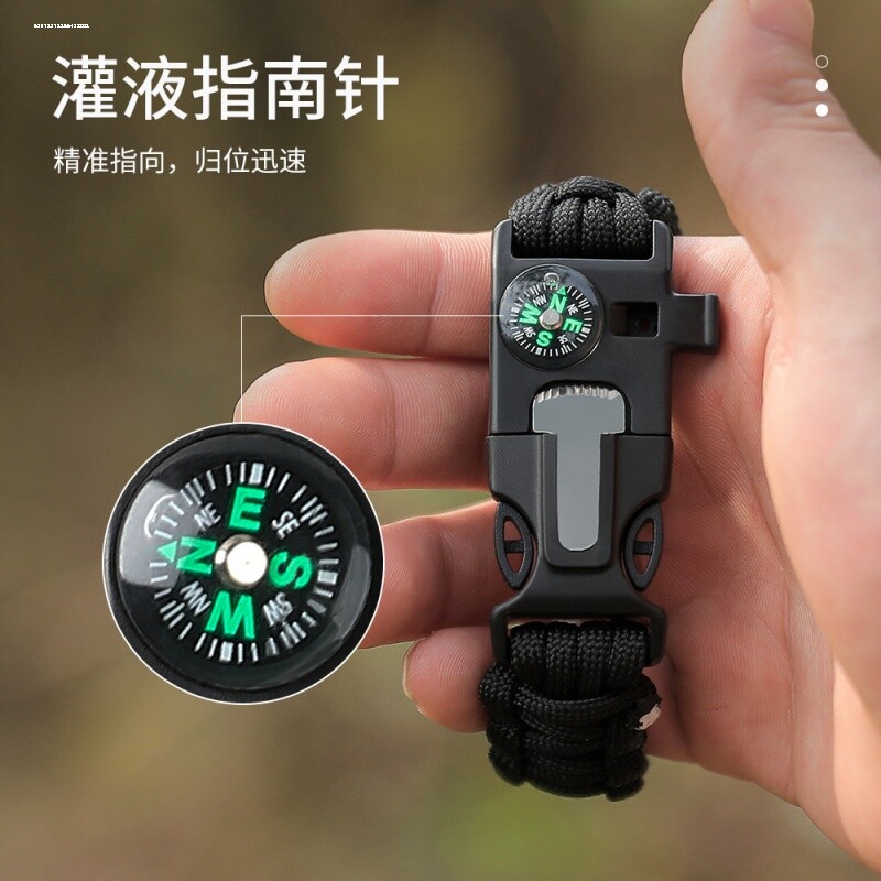 5合一伞绳手链求生电子表多功能手环打火棒指南针应急口哨螺丝刀