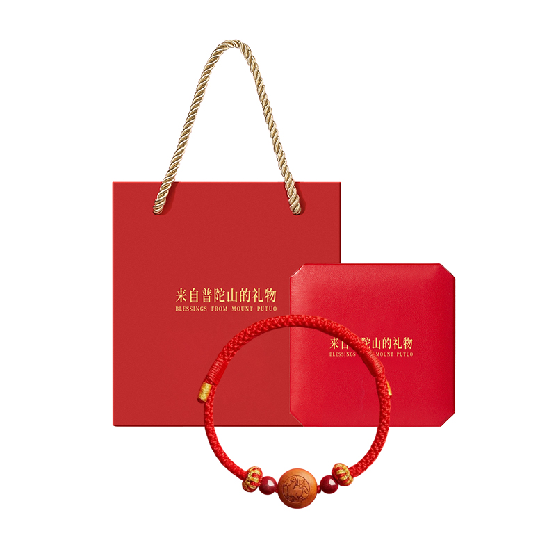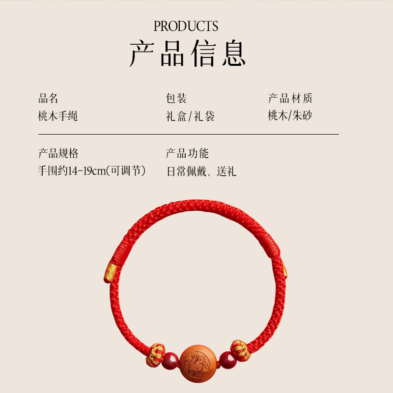 遇见普陀山天然桃木朱砂红绳十二生肖手链儿童编织手绳男女护身符