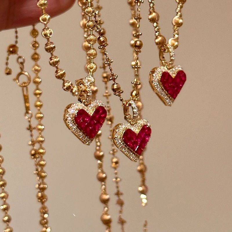 S925纯银新年红色爱心项链精致小众气质颈链秋冬高级感锁骨链