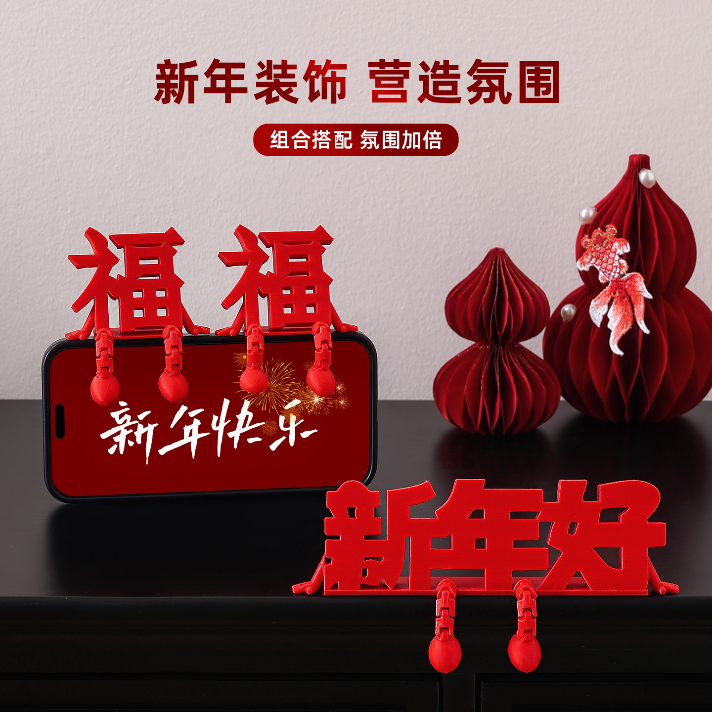 新年春节年味乔迁氛围布置装饰品过年马年立体福字小摆件2026之喜