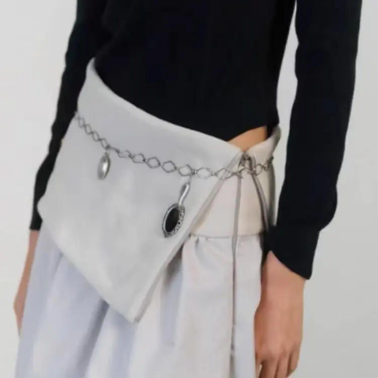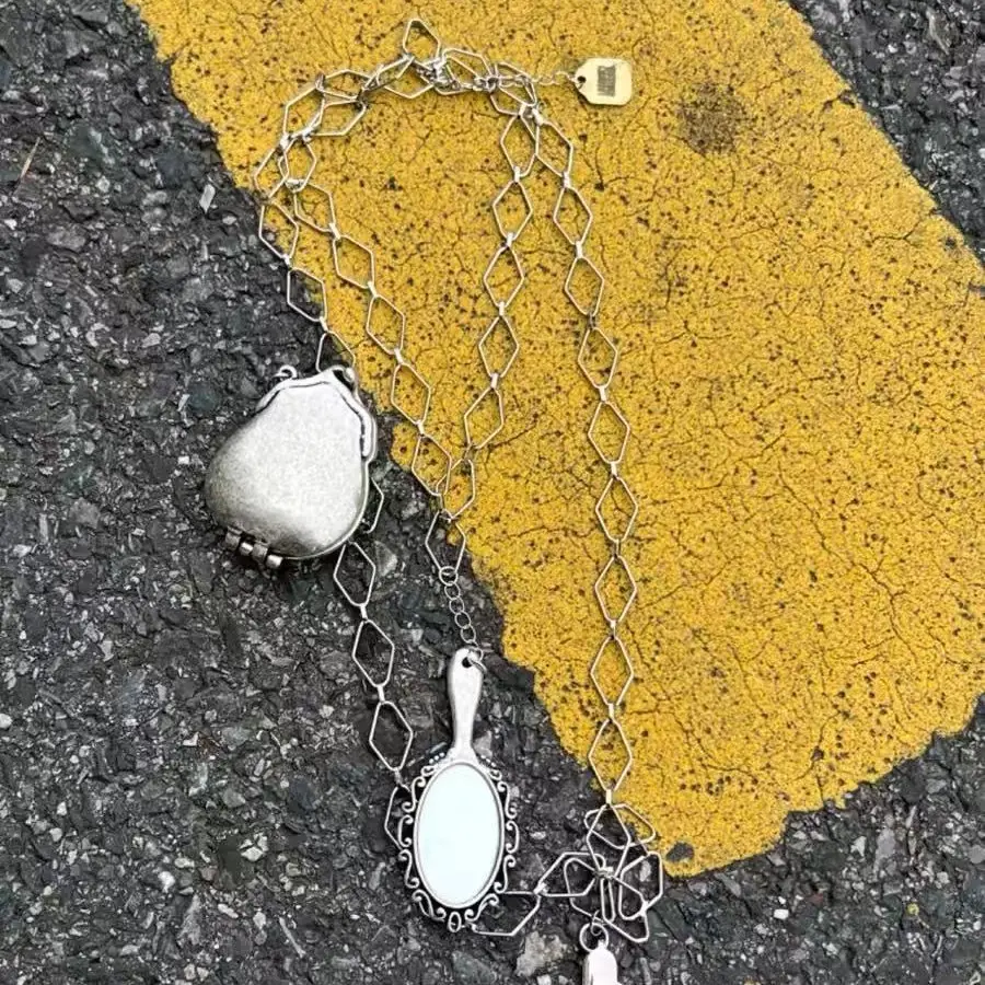 韩国吴小姐同款amomento重工复古镜子吊坠菱格链腰链毛衣链