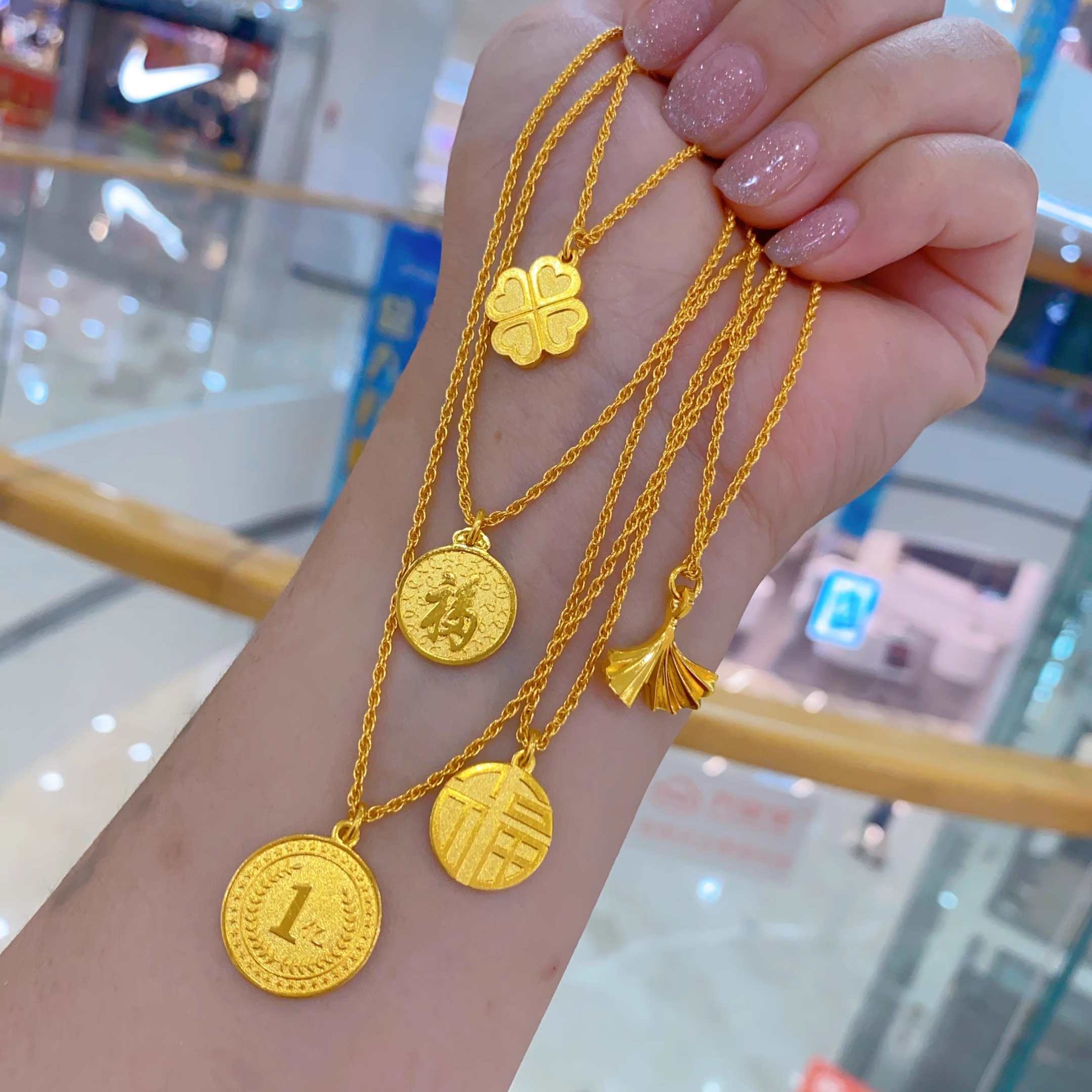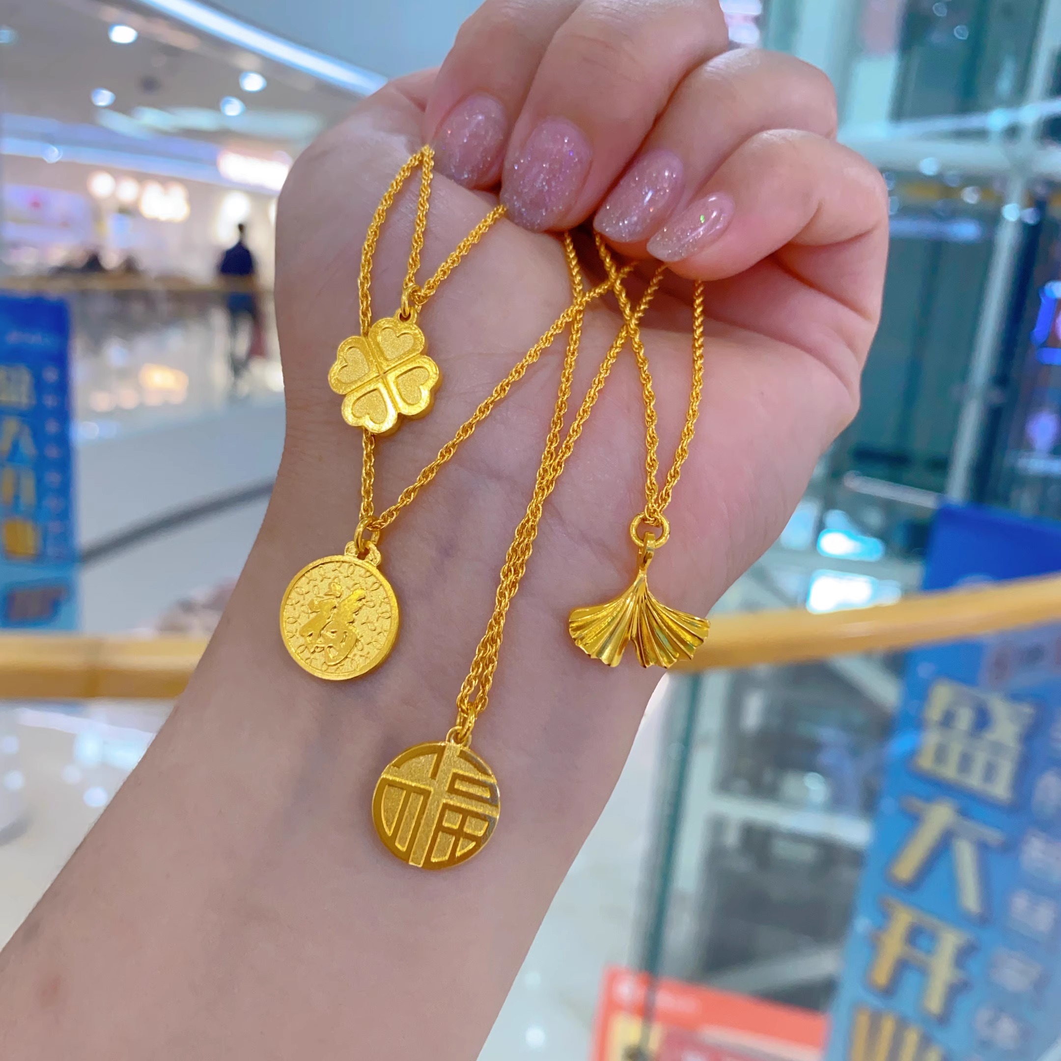 金包银项链福字圆牌精致百搭套链女新款福字吊坠锁骨链送女友礼物