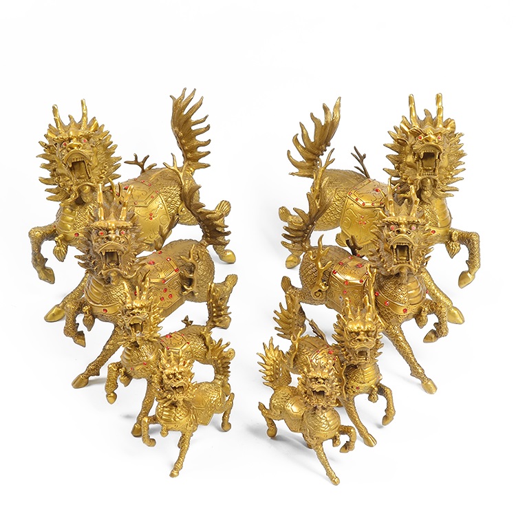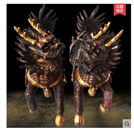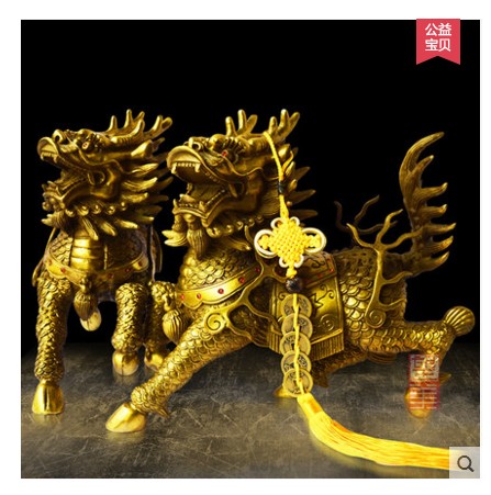 纯铜麒麟摆件一对纯铜火麒麟风水招财办公室客厅家居装饰品大号