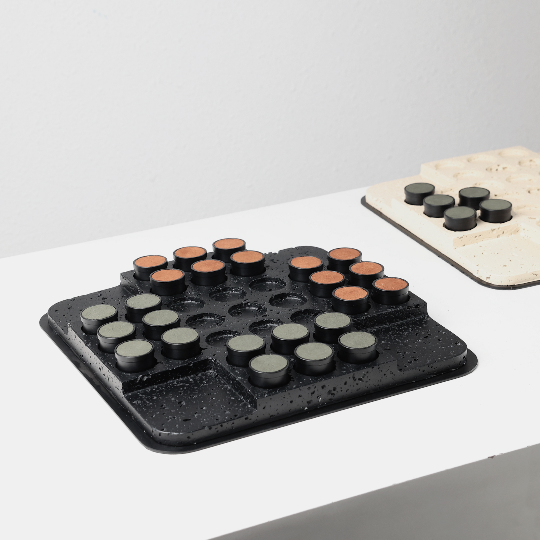 现代样板间民宿酒店桌面摆饰书房侘寂风洞石棋盘艺术装饰托盘摆件